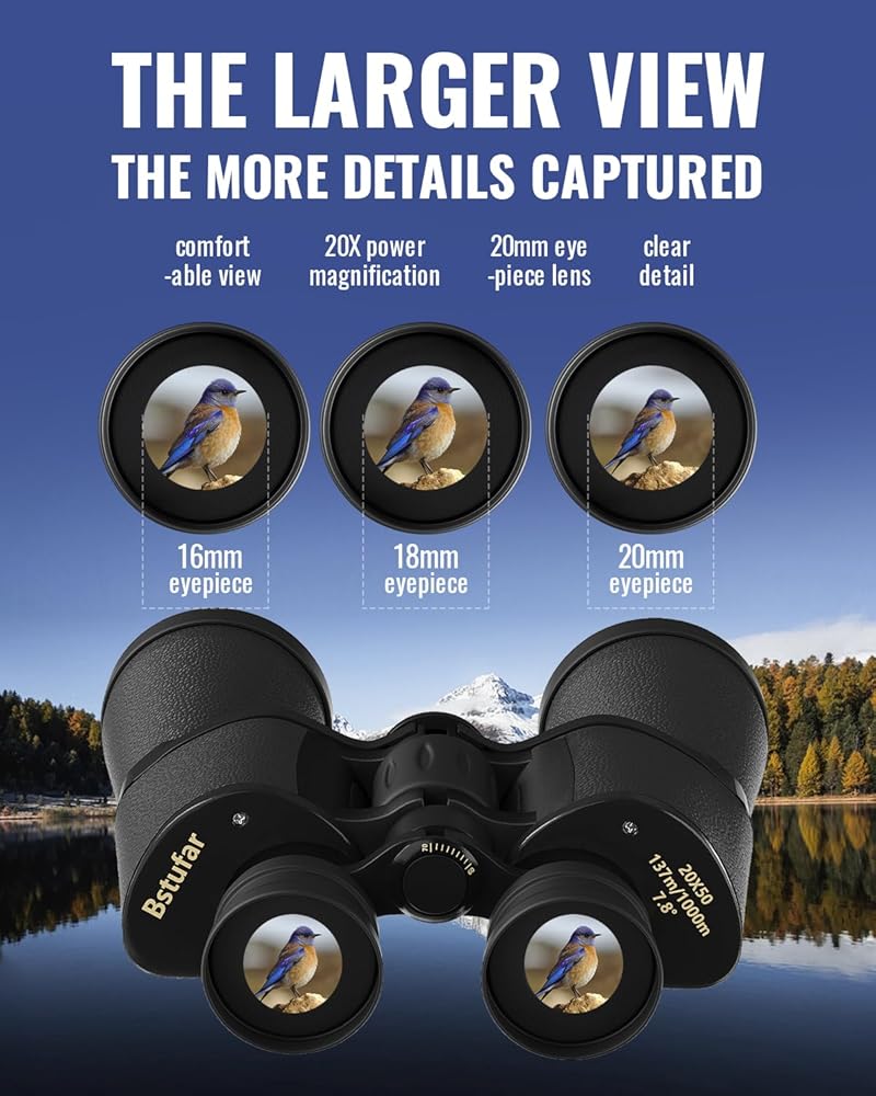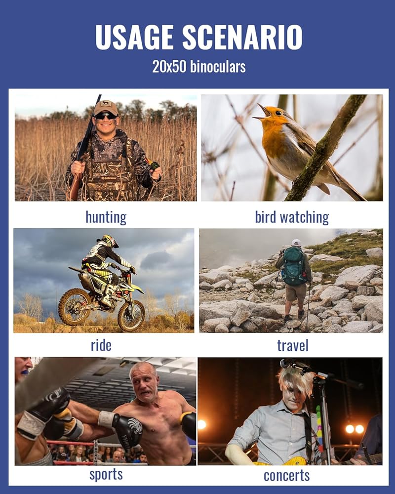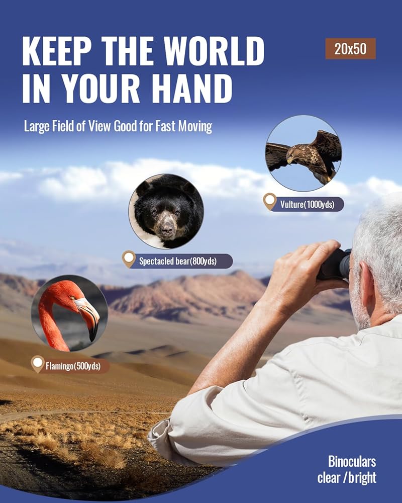 مناظير قوية احترافية - مصممة بتكبير طاقة 20 مرة، وعدسة موضوعية كبيرة مقاس 50 مم ومجال رؤية كبير يبلغ 367 قدمًا/1000 ياردة جيد للحركة السريعة.