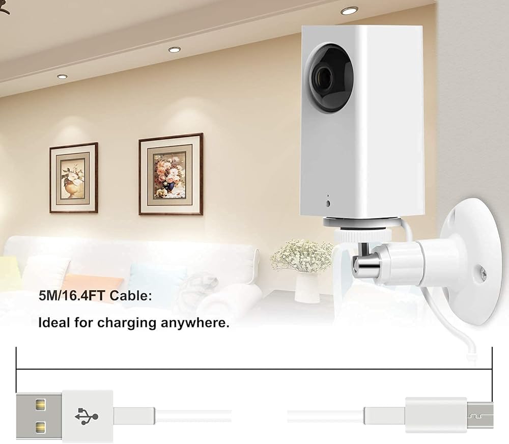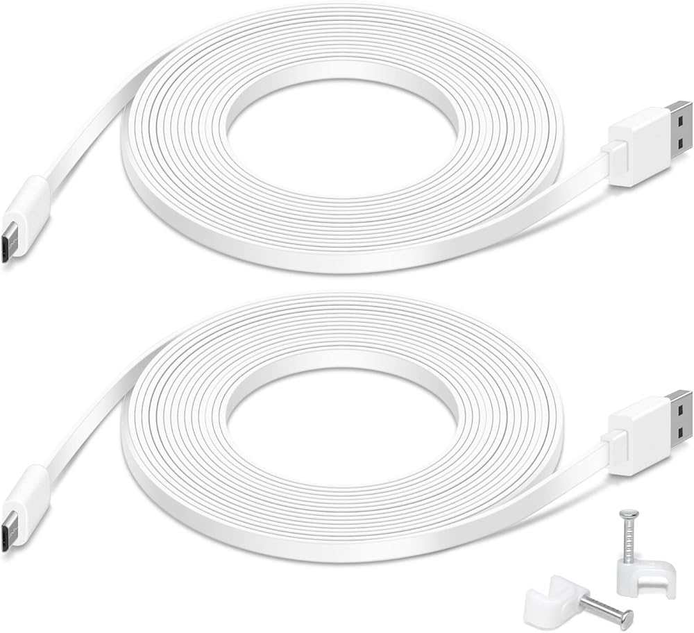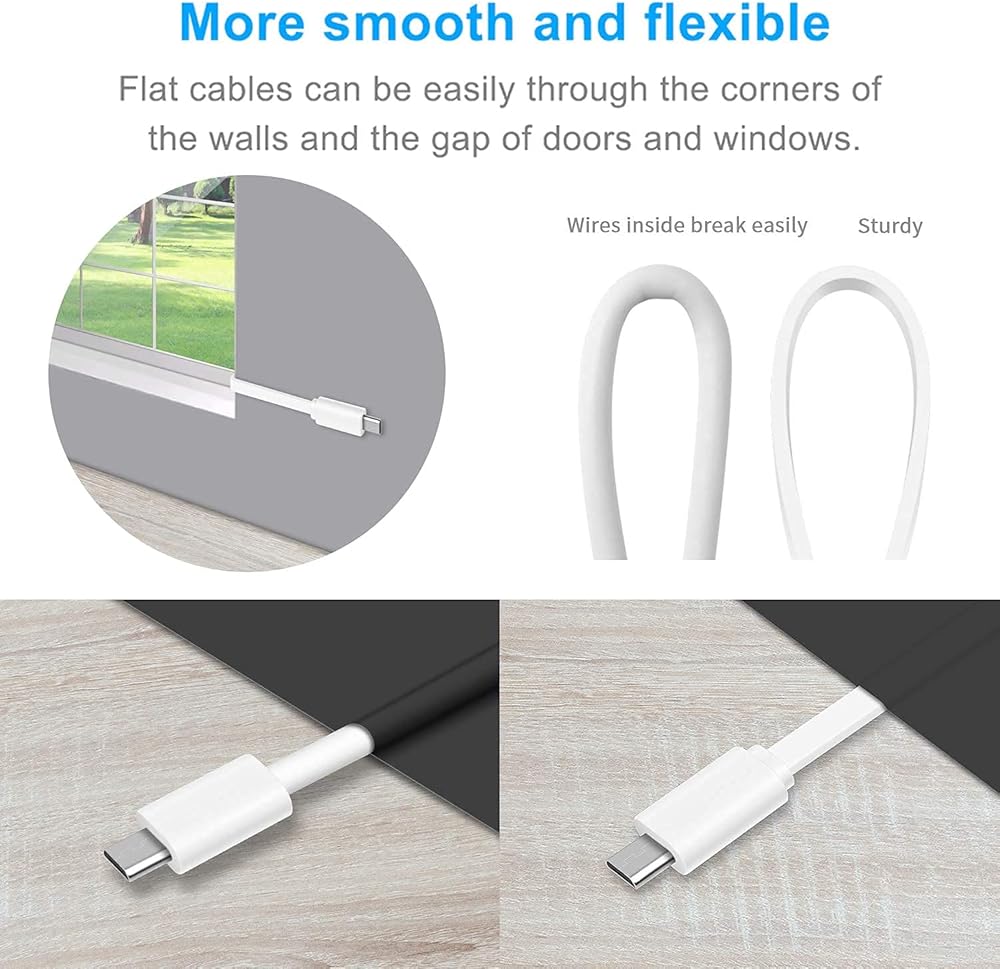 كيبل تمديد طاقة مسطح بطول 16.4 قدم متوافق مع كاميرا وايز كام بان وكاسا وكاميرا واي اي دوم هوم وفوربو دوج ونيست كام وبلينك وكاميرا كلاود وكيبل شحن متين لكاميرا المراقبة من قطعتين