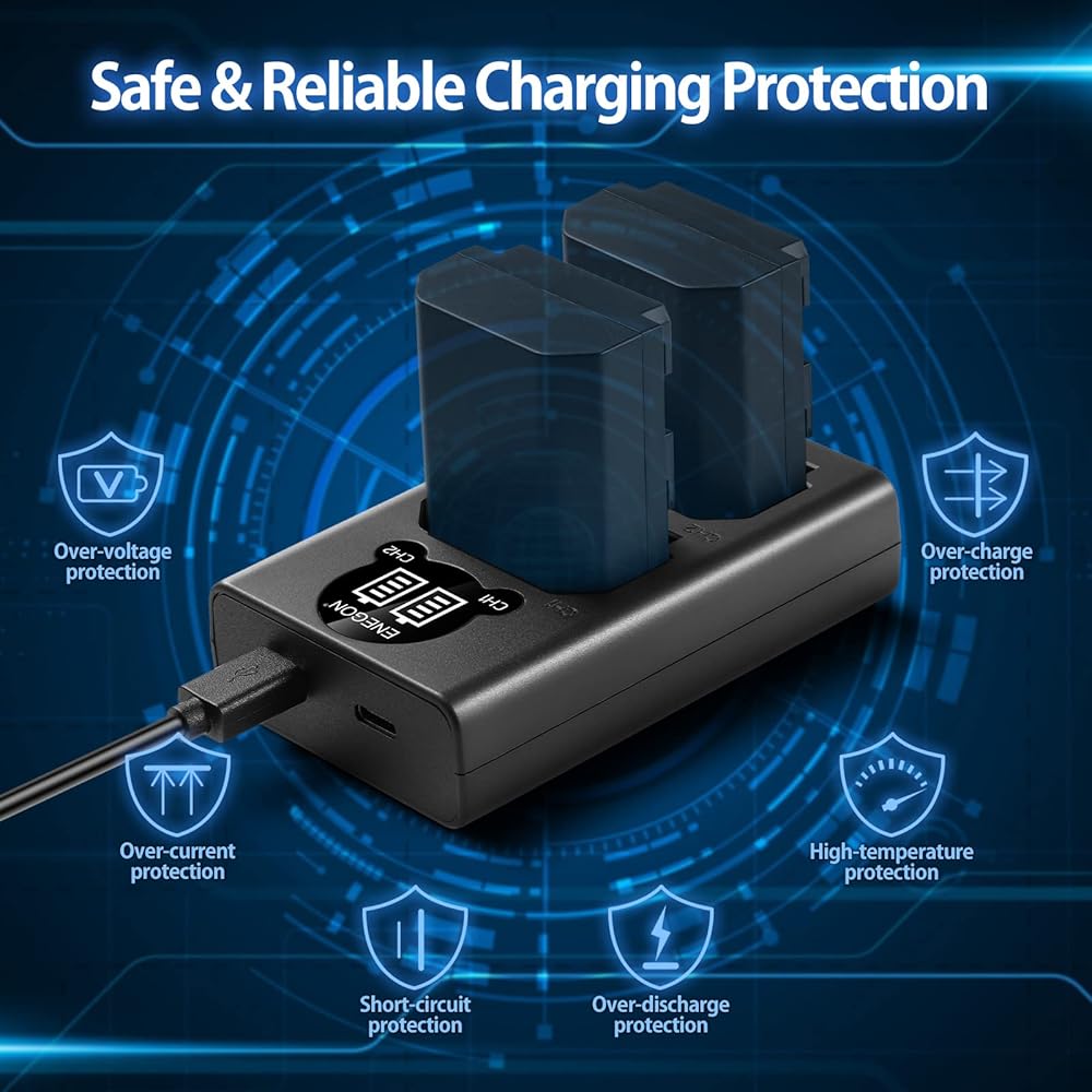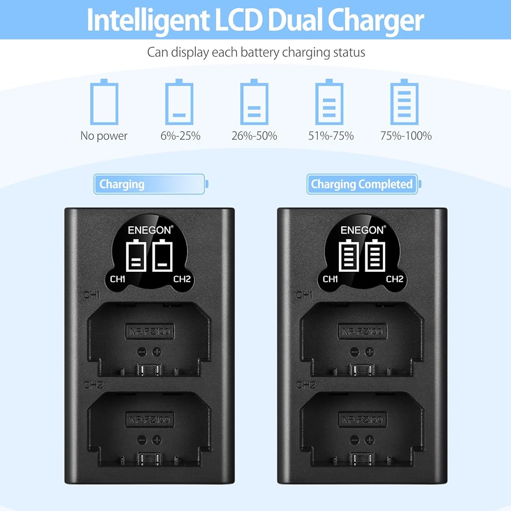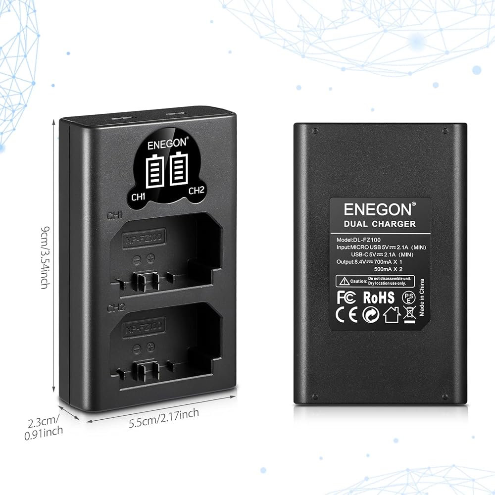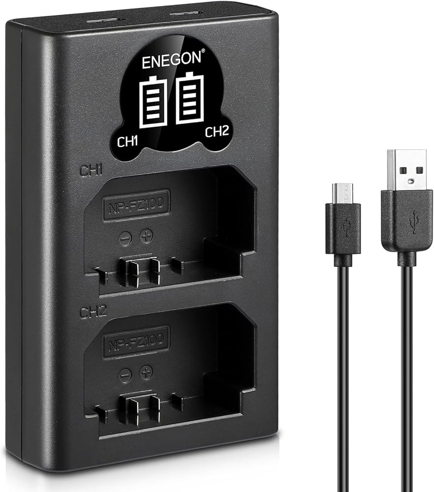 شاحن USB ENEGON NP-FZ100 LED لبطارية Sony NP-FZ100، متوافق تمامًا مع Sony Alpha 9/Alpha 9R/Alpha 9S، Sony A9/A9R Sony A73/A7R3، Sony A7III/A7RIII/A7RIV/A7C، Sony A6600.