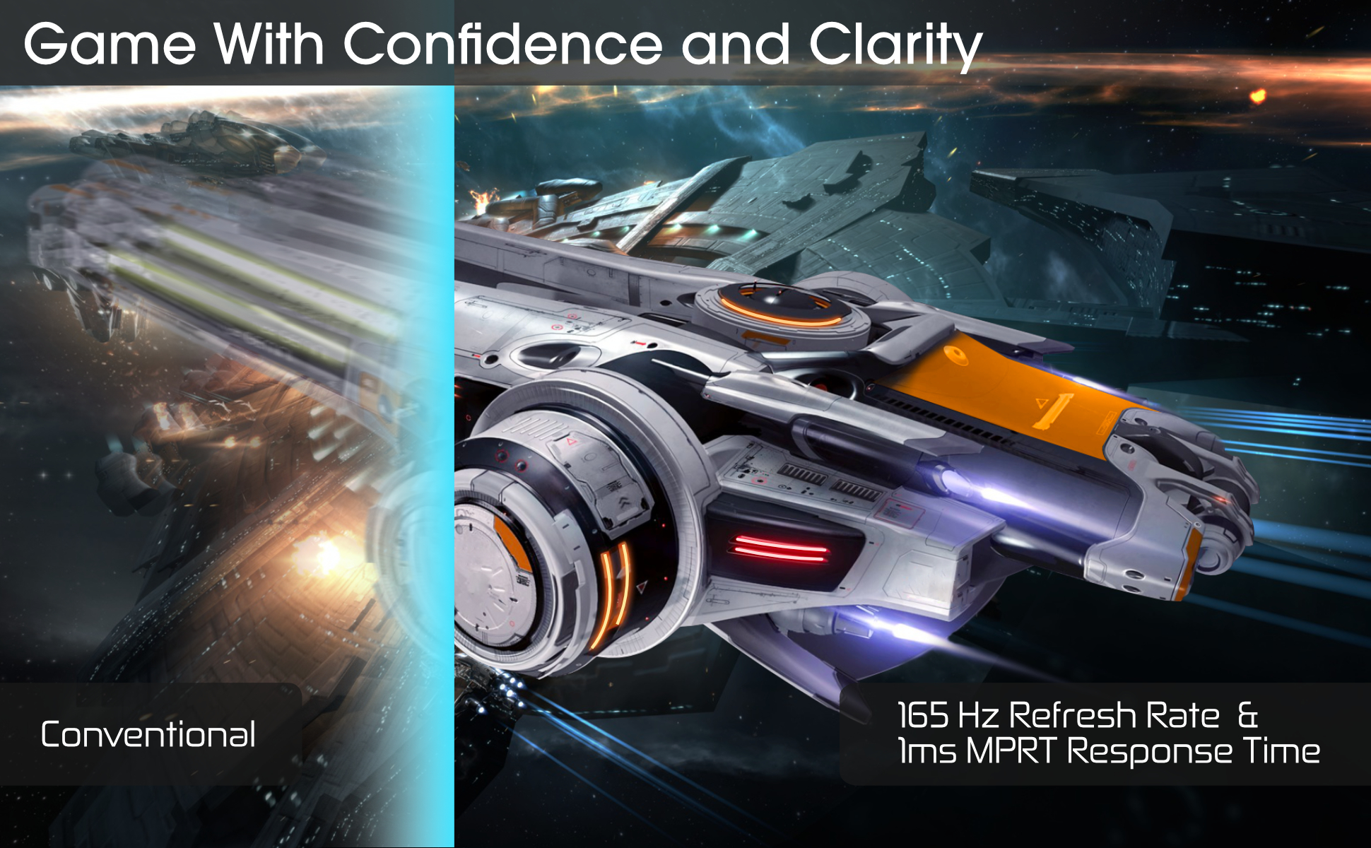 معدل تحديث يصل إلى 165 هرتز: ابق فوق العبوة بتردد 165 هرتز، مما يمنحك ميزة في الأداء مع انتقال الإطارات على الفور.