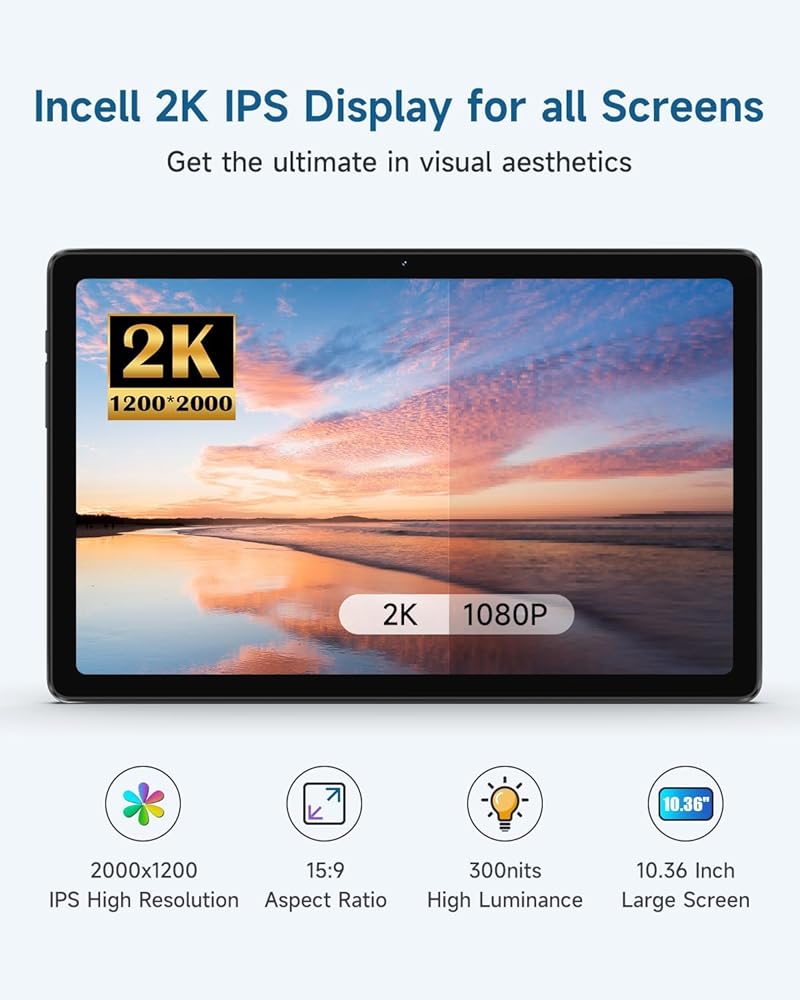 سواء كانت عائلتك تقوم بالبث أو الدردشة بالفيديو مع الأصدقاء، فإن الكمبيوتر المحمول اللوحي يبرز أفضل ما في كل لحظة على شاشة LCD IPS مقاس 10.4 بوصات بدقة 2000*1200 Full HD 2K. وتحتوي على كاميرات مزدوجة و 8 ميجابكسل في الخلف و 5 ميجابكسل في الأمام لالتقاط صور مذهلة ومحادثات الفيديو.