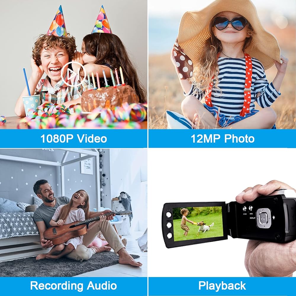 • 【هدية مثالية للأطفال/المراهقين】كاميرا فيديو للأطفال مجهزة بمواد عالية الجودة، خفيفة وصغيرة الحجم، سهلة الحمل دون أن تشغل مساحة. تعد كاميرات الفيديو هذه هدية مثالية للأطفال والمراهقين والمبتدئين والبالغين لتسجيل لحظاتهم الجميلة. رائعة للسفر والعطلات والتخييم والحفلات العائلية.