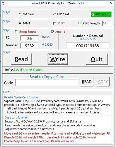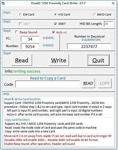 -يسمح باستخدام كتابة FC والرقم على البطاقات / fobs القابلة لإعادة الكتابة من FissaiD