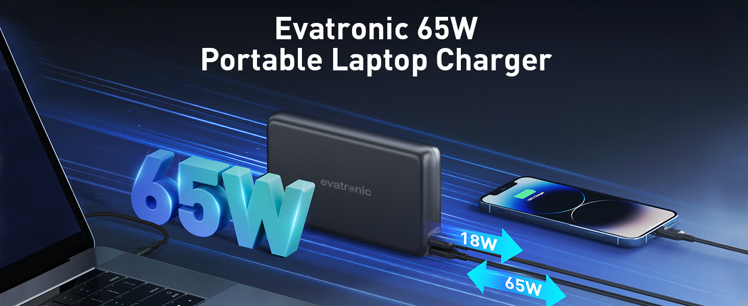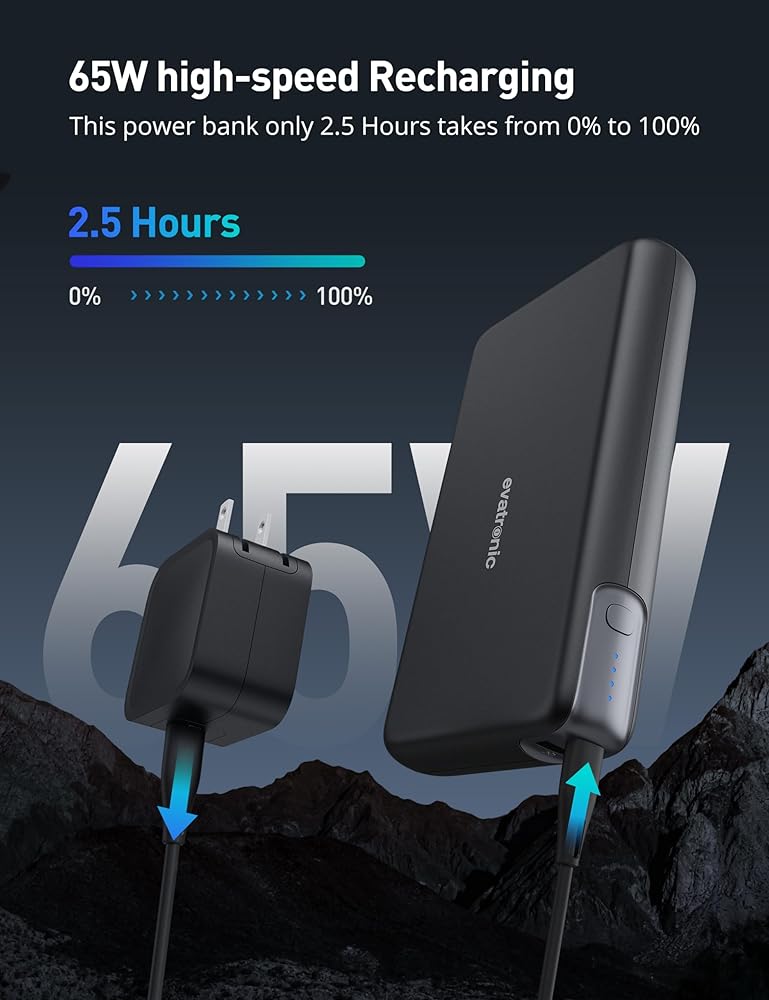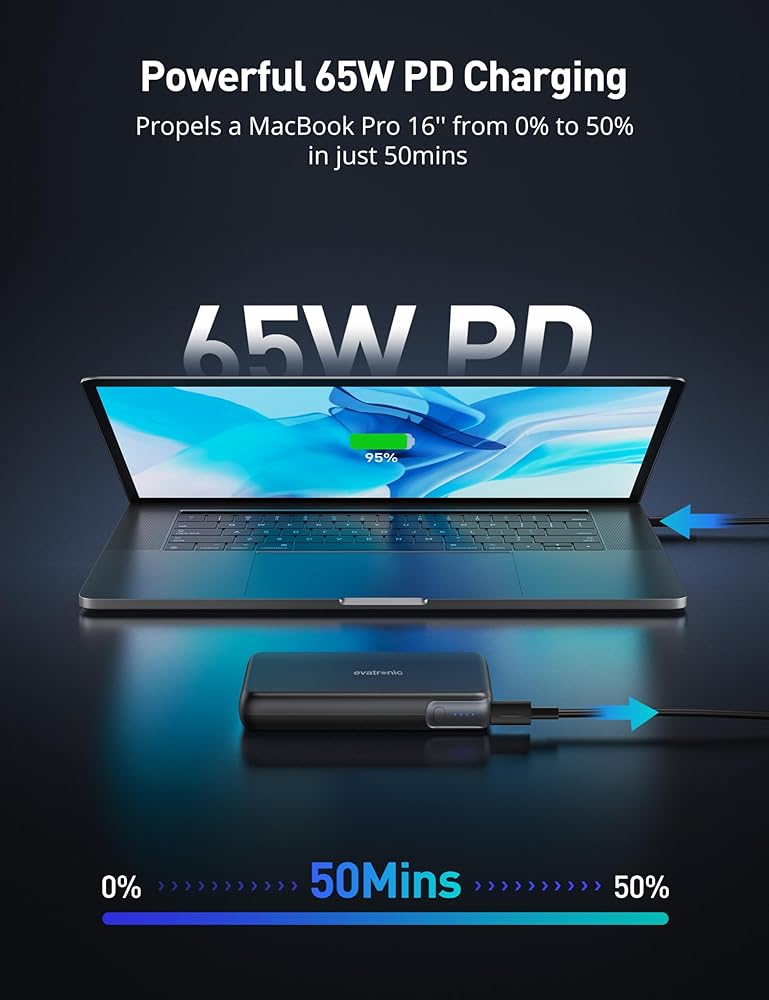 【شحن سريع 65 وات PD 】 يوفر منفذ USB-C بقدرة 65 وات طاقة كافية لشحن جهاز كمبيوتر محمول بأقصى سرعة، حيث يقوم بنك الطاقة هذا بشحن جهاز MacBook Pro 16 بوصة من 0% إلى 50% في 50 دقيقة فقط باستخدام كابل USB-C إلى C المتضمن، مثالية لرحلات العمل أو الخارج.