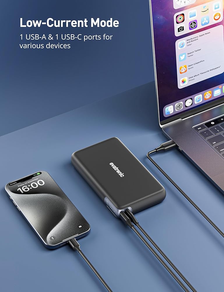【توافق عالمي】يتوافق بنك الطاقة المحمول هذا مع أجهزة MacBook Pro/Air وThinkPad وMateBook وiPad Pro/Mini وiPhone 15/14/13/Pro/13 Pro Max/13 Mini/14 Plus وiPhone 12/12 Pro /12 Pro Max/12 Mini، AirPods، GalaxyS23/S22/S21/S21+/S20/S20+/S23+/Note20/Note10، سماعات أذن لاسلكية، مكبرات صوت بلوتوث، ساعات ذكية، سطح بخار، مفاتيح والمزيد.