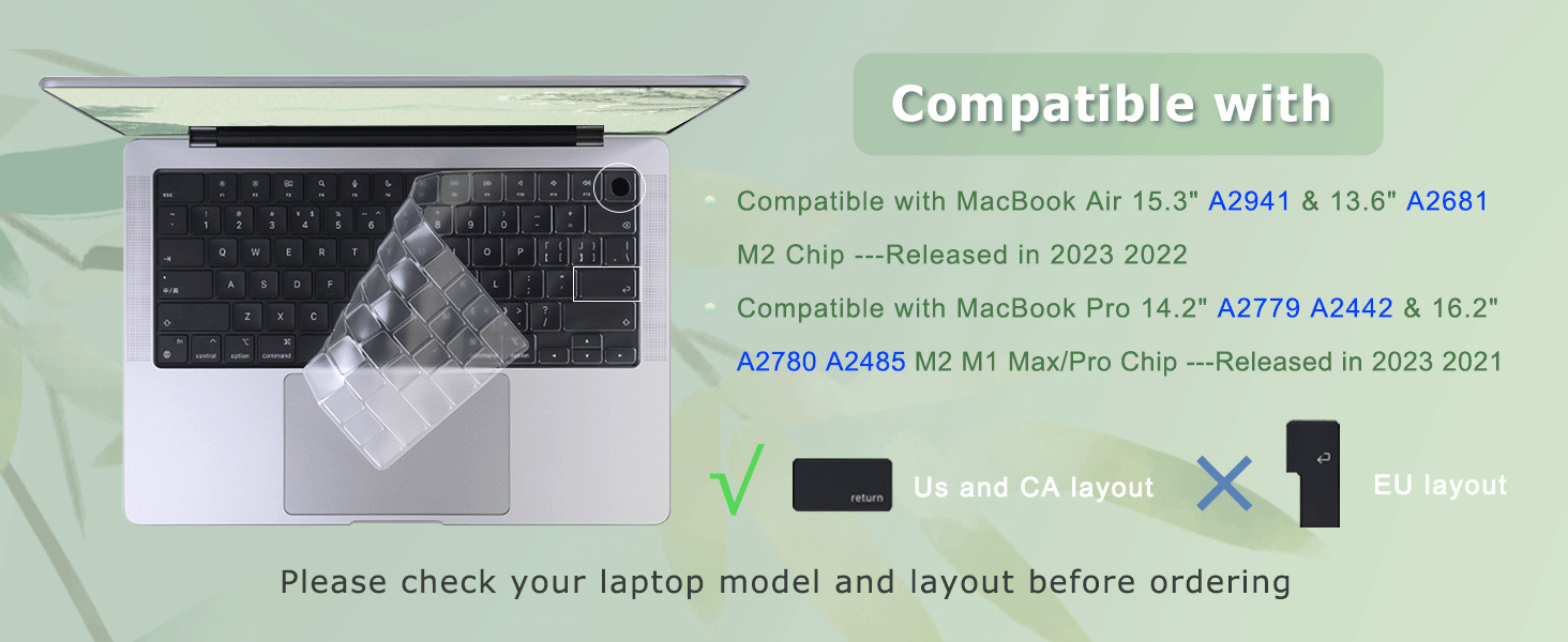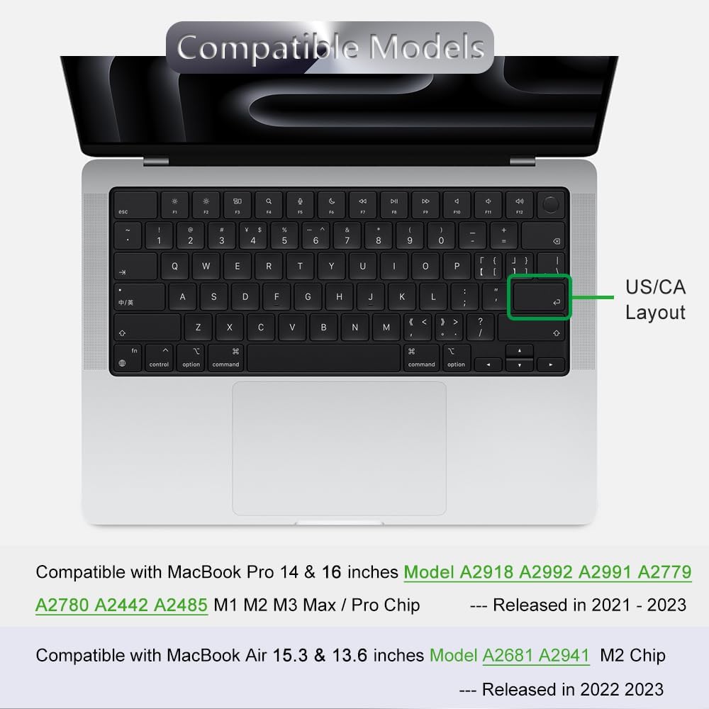 【الموديل المتوافق】: متوافق مع ماك بوك اير 15.3 انش و13.6 انش شريحة ام 2 تم إصدارها في عام 2023 مع خاصية تاتش اي دي بتصميم الولايات المتحدة وكالة كاليفورنيا (مظهر مفتاح "Enter" يشبه "المستطيل") ؛ غير متوافق مع الموديلات الأخرى