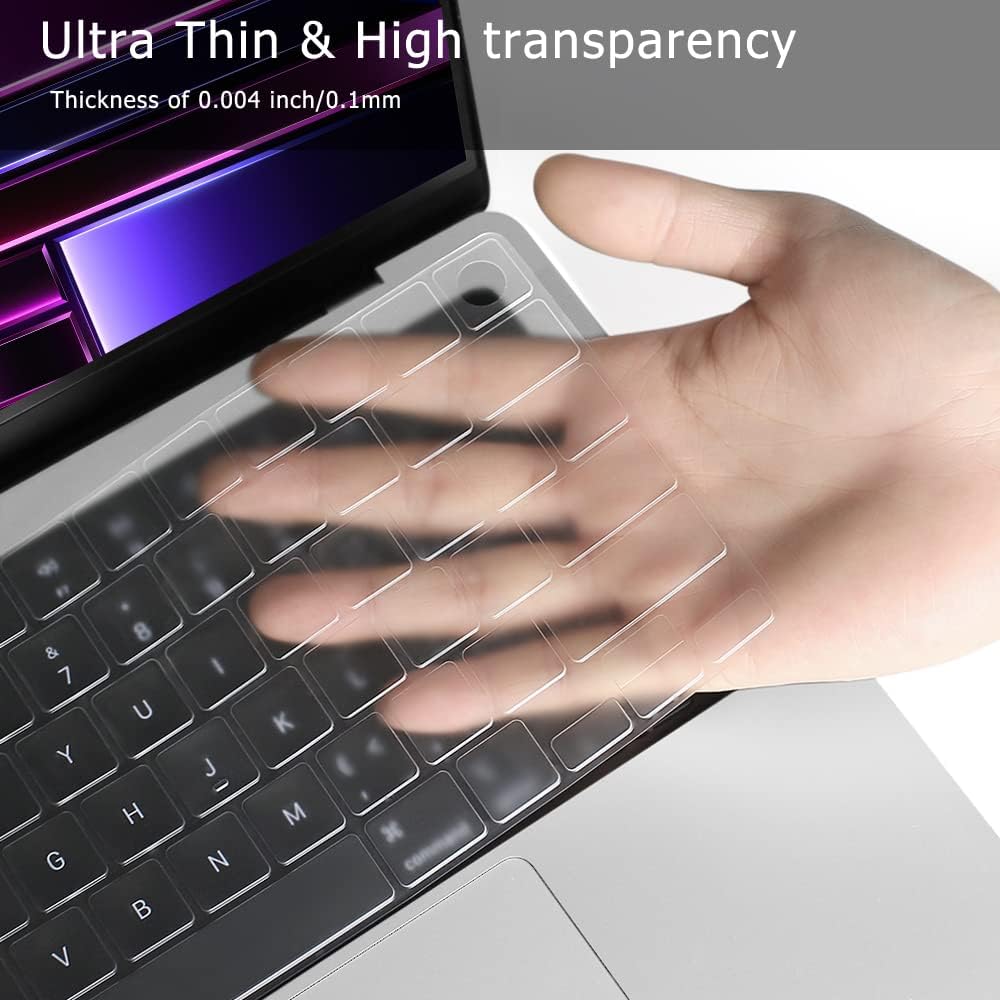 【حماية غير مرئية تقريبًا】: السمك 0.006 انش/0.15 ملم فقط. تصميم رفيع للغاية، لن يؤثر على فتح وإغلاق غطاء اللاب توب. حافظ على اللمسة الأصلية للجسم من أجلك. قطع دقيق لمفتاح معرف اللمس، يمكنك استخدام مفتاح تاتش اي دي مباشرة مع التحقق من بصمات الأصابع