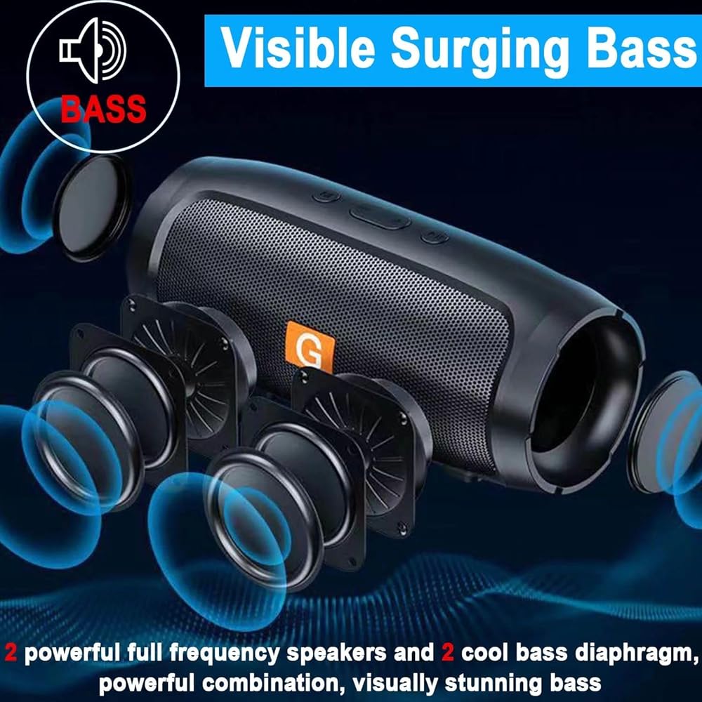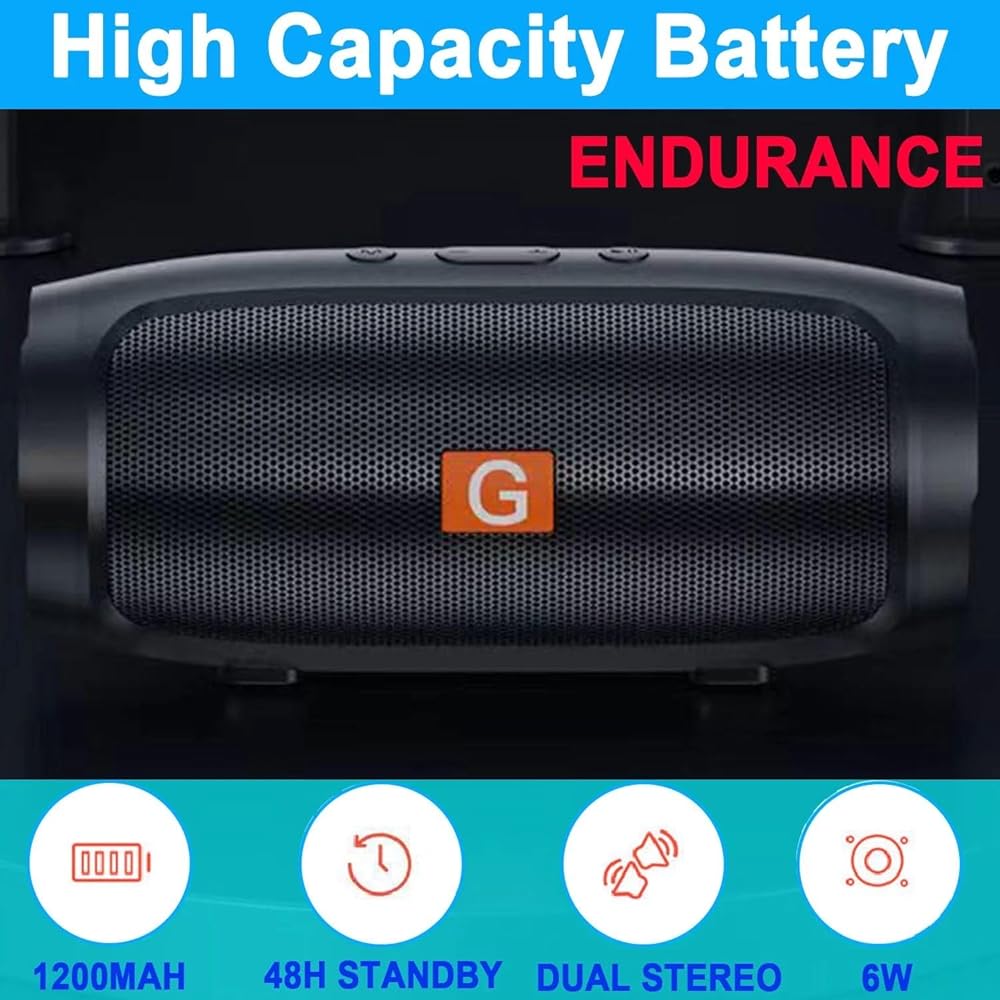وقت تشغيل 24 ساعة ونطاق بلوتوث 100 قدم: مكبر صوت بلوتوث محمول مدمج ببطارية قابلة لإعادة الشحن بقدرة 8000 مللي أمبير في الساعة، يدعم وقت تشغيل يصل إلى 24 ساعة بحجم 50%. البلوتوث