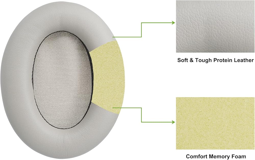 وسائد أذن بديلة لسماعات سوني WH-1000XM3، مع جلد ناعم الملمس، وإسفنج ميموري عازل للضوضاء (فضي)