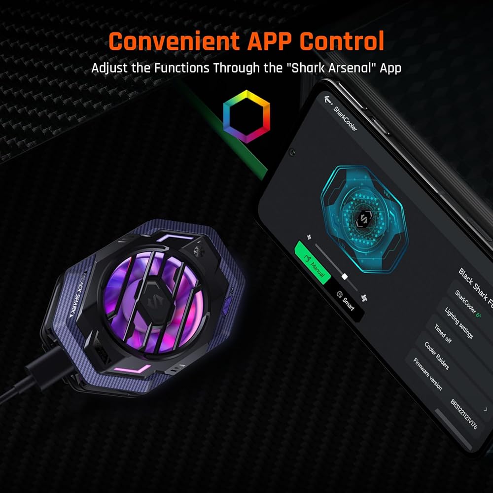 • 【يمكنك تخصيص أسلوبك الشخصي بسهولة داخل التطبيق】من خلال وظيفة التطبيق، يمكنك التحكم في سرعة مروحة التبريد يدويًا على هاتفك الذكي أو ضبط السرعة تلقائيًا من خلال الوضع "الذكي". قابل للتخصيص بالكامل في تطبيق Shark Arsenal للعثور على تأثير الإضاءة الخاص بك. يمكنك أيضًا ضبط مؤقت للإغلاق التلقائي بغرض توفير الطاقة.