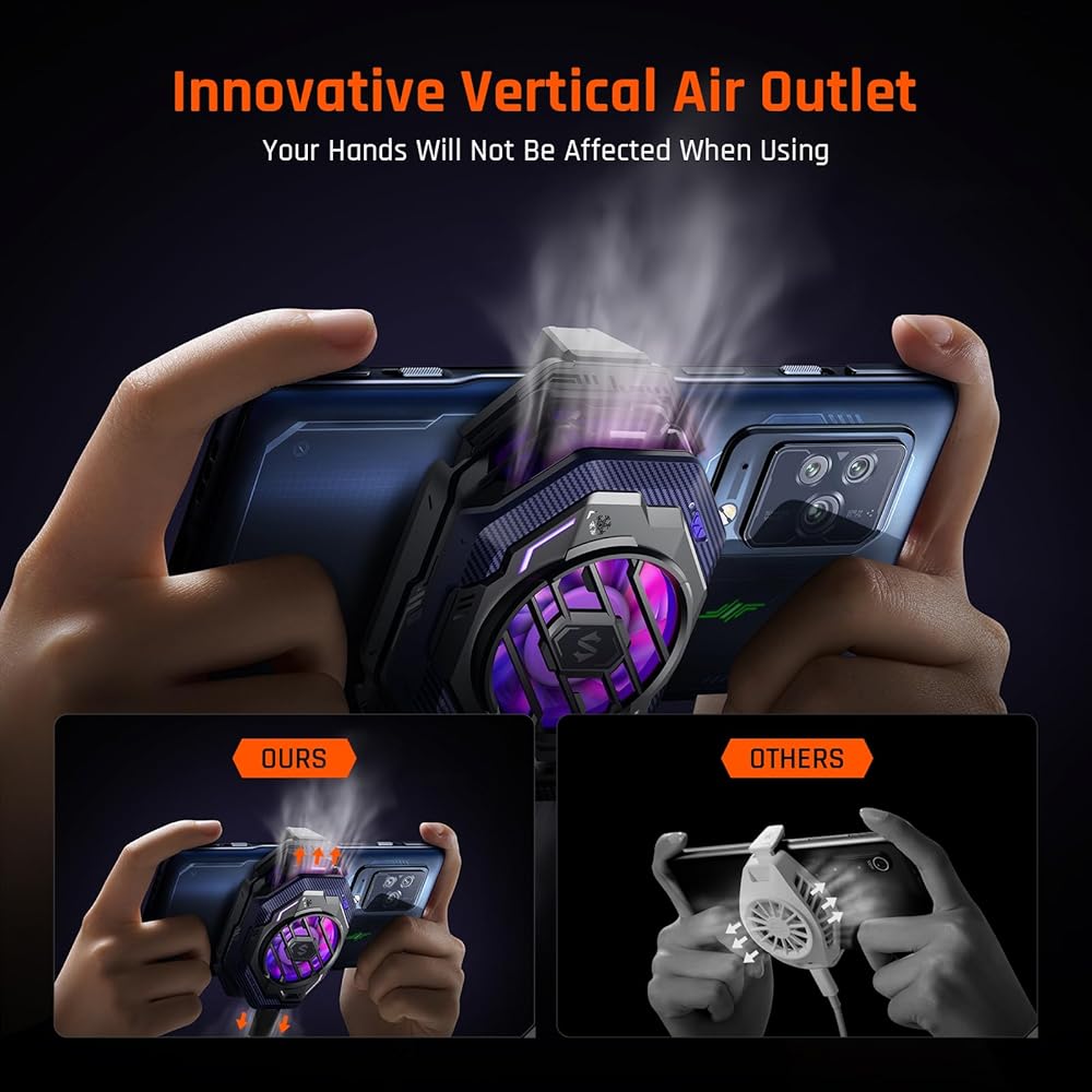 • 【Black Shark Phone Cooler 3 Pro】يوفر مبرد الهاتف 3 Pro قوة تبريد تبلغ 20 وات، ورقاقة تبريد TEC كبيرة جدًا مقاس 1404 مم²، وهي قدرة تبريد أكبر بنسبة 72% من شرائح التبريد التقليدية، ولوحة تبريد مقاس 2200 مم² مع موصلية حرارية تبلغ 401 وات/م ك. يمكن لـ Cell Phone Cooler تبريد هاتفك المحمول بسرعة خلال 3 ثوانٍ عندما تعاني من ارتفاع درجة الحرارة وشاشة الهاتف المعتمة في الصيف الحار في الهواء الطلق.