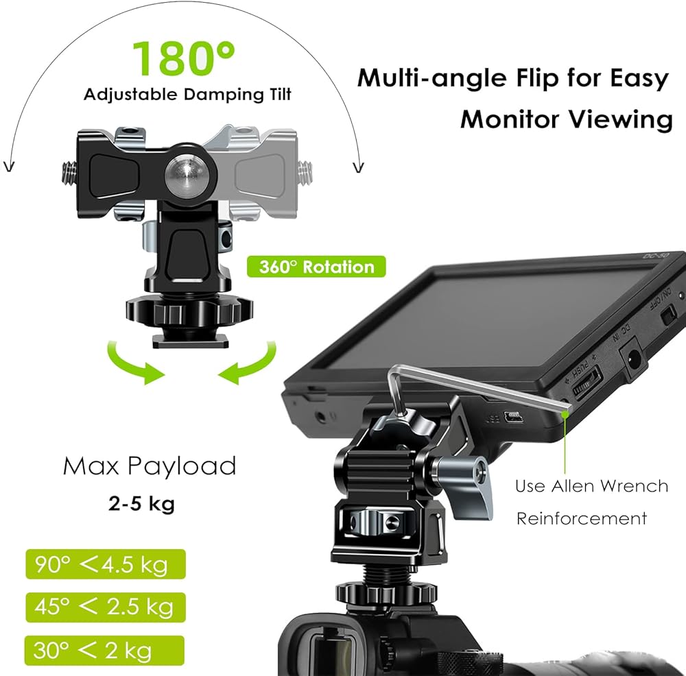 حامل شاشة الكاميرا، دوران 360 درجة وإمالة 180 درجة، حامل شاشة ميدانية للكاميرا مع دبوس مزدوج على شكل حذاء بارد متوافق مع شاشة 5 بوصات و7 بوصات، شاشة Feelworld/ATOMOS/SmallHD