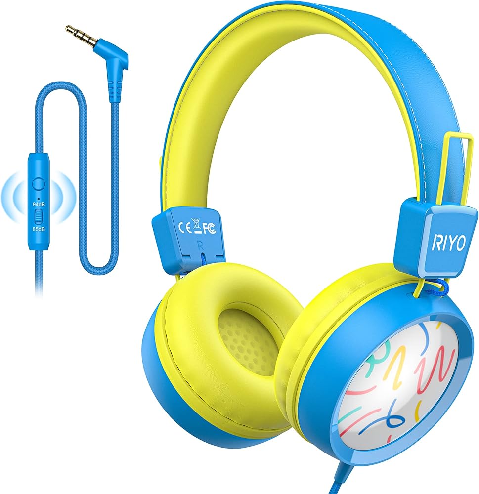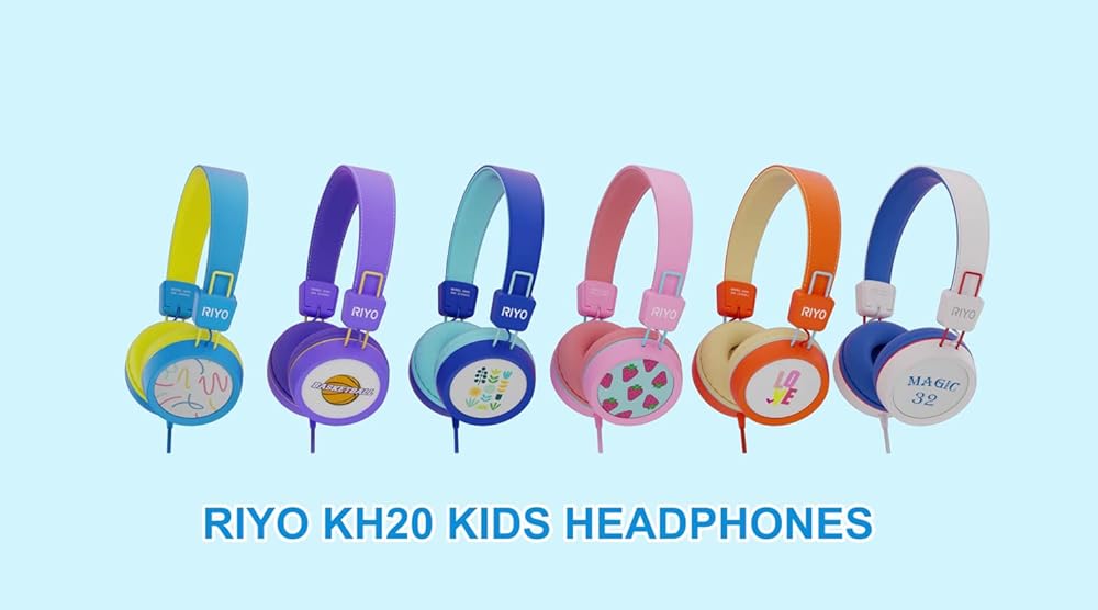 سماعات رأس RIYO KH20 للأطفال مع ميكروفون عالي الدقة متوافقة مع الهواتف/أجهزة الكمبيوتر المحمولة/الأجهزة اللوحية/أجهزة الكمبيوتر وأجهزة الألعاب (أزرق سماوي)
