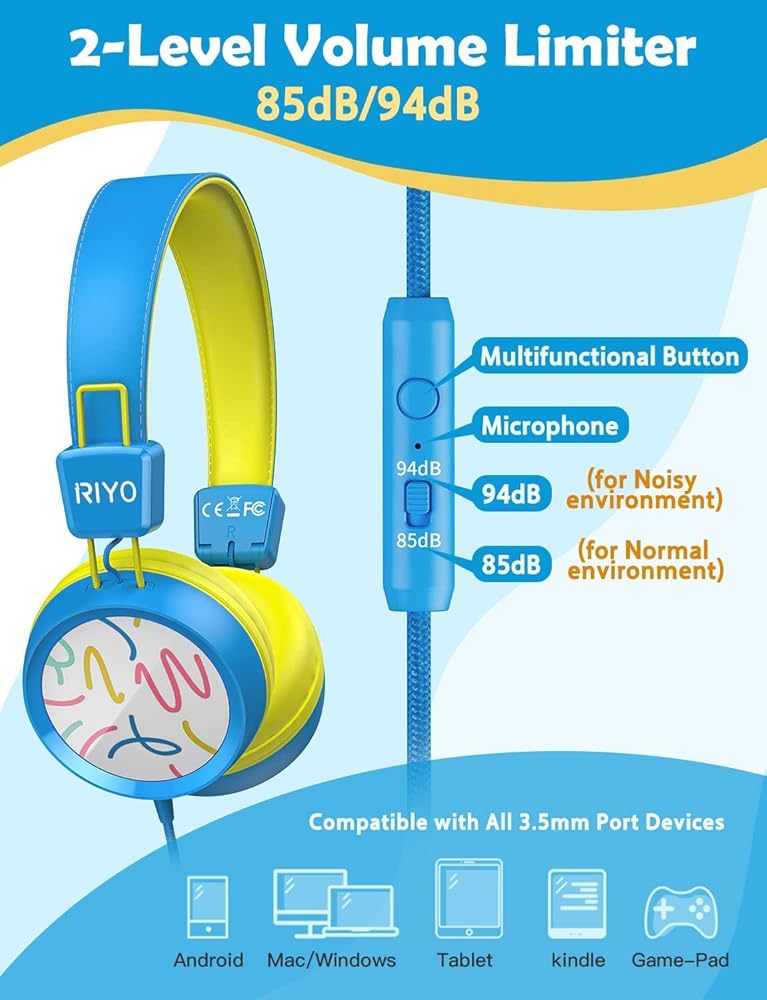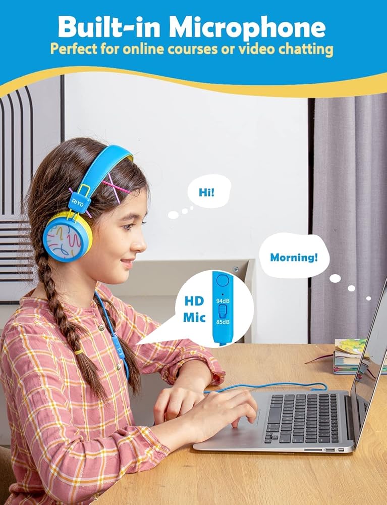 【ميكروفون مدمج】تم تصميم سماعات الرأس RIYO KH20 للأطفال بميكروفون مدمج، مما يوفر مكالمات واضحة بدون استخدام اليدين مثالية للتعلم عبر الإنترنت.