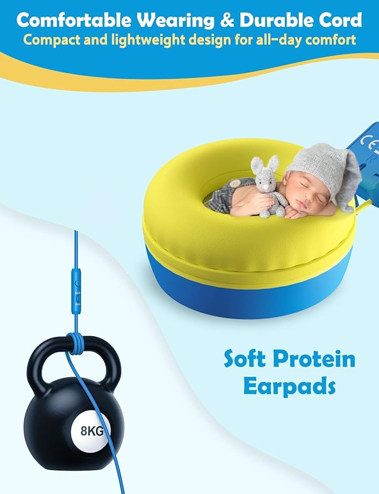 【ارتداء مريح】 تستخدم سماعات الرأس RIYO للأطفال وسائد أذن ناعمة وجيدة التهوية، مصممة لتناسب آذان الأطفال وتعزل الضوضاء البيئية إلى أقصى حد. لن تجعل أطفالك يشعرون بالتعب أو بأي عبء حتى لو تم استخدامها لفترة طويلة.