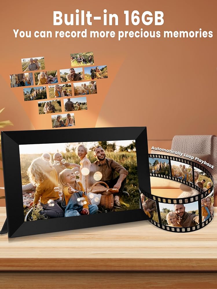 • 【شاشة IPS عالية الوضوح】تضمن دقة 1920*1080 أن تكون الصورة في إطار الصورة الرقمية WiFi واضحة وحيوية. بفضل الدقة العالية، يمكنك حتى العودة إلى المشهد في الصورة مرة أخرى. تتميز شاشة IPS بزاوية عرض 180 درجة، مما يعني أنه يمكنك رؤية الصورة الخالية من التشويه من أي زاوية. كما تمنحك الشاشة التي تعمل باللمس مقاس 10.1 بوصة تجربة بصرية رائعة.