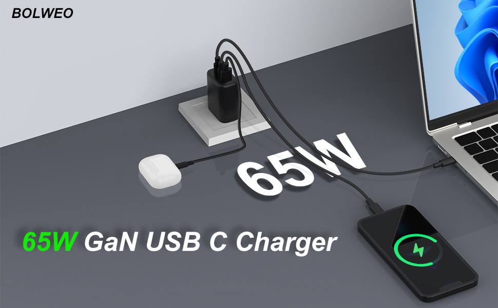 • شحن عالي السرعة: استمتع بالشحن السريع مع شاحن BOLWEO GaN السريع بقدرة 65 وات. تم تصميمه باستخدام تقنية GaN (نيتريد الغاليوم) المتقدمة، فهو يوفر الطاقة بكفاءة لأجهزتك، مما يضمن الشحن السريع والموثوق.