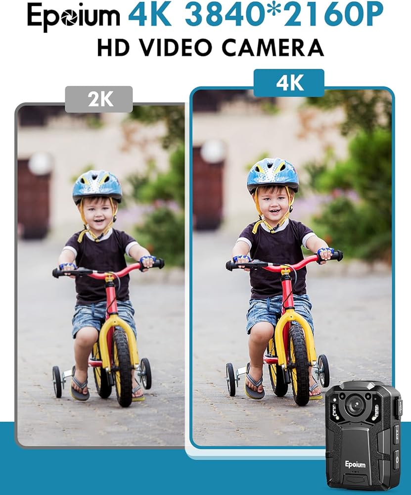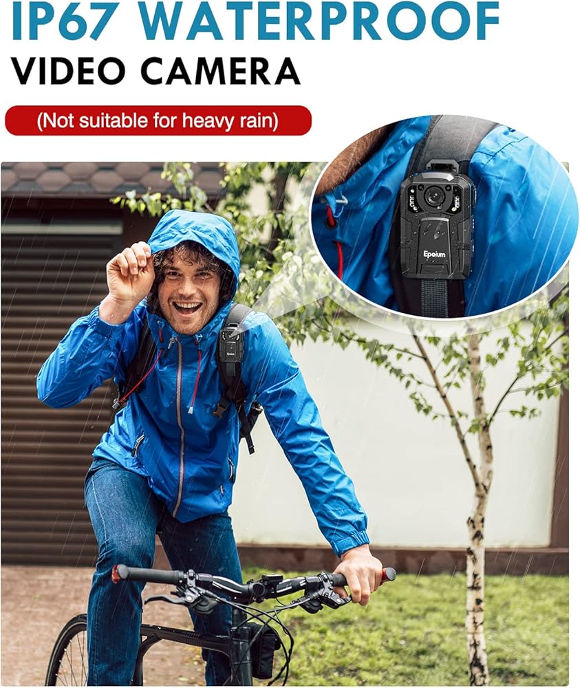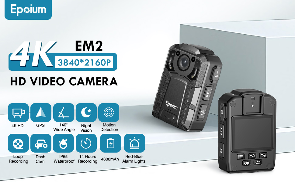 كاميرا الجسم Epoium EM2 128GB 4K، دعم مسار GPS، بطارية 4600 مللي أمبير في الساعة، تسجيل فيديو 14 ~ 16 ساعة، مقاومة للماء IP67، كاميرا مثبتة على الجسم مع رؤية ليلية وحماية الملفات للتسجيل