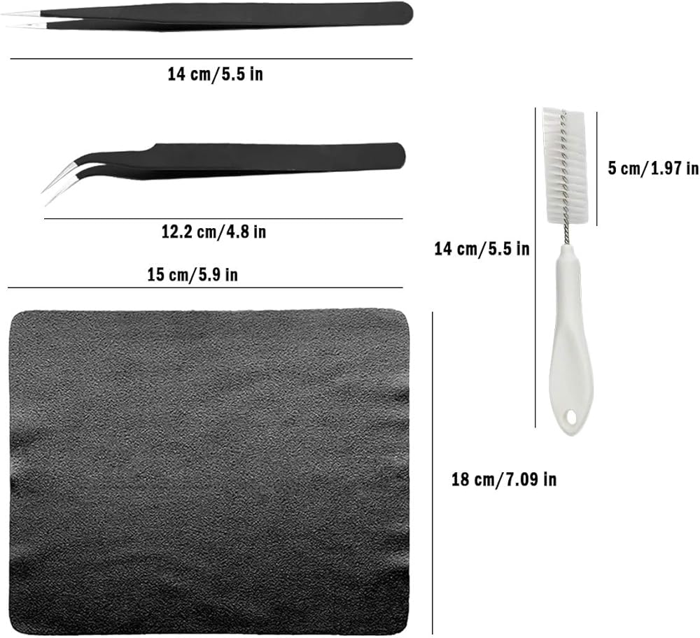 • Brushes of various sizes: large brushes can clean desktops, computer mainframes, car center consoles; small and medium brushes can clean small gaps in keyboard printers; curved brushes can clean hard-to-reach areas; tweezers can be easily removed and clipped inside the keyboard thing.