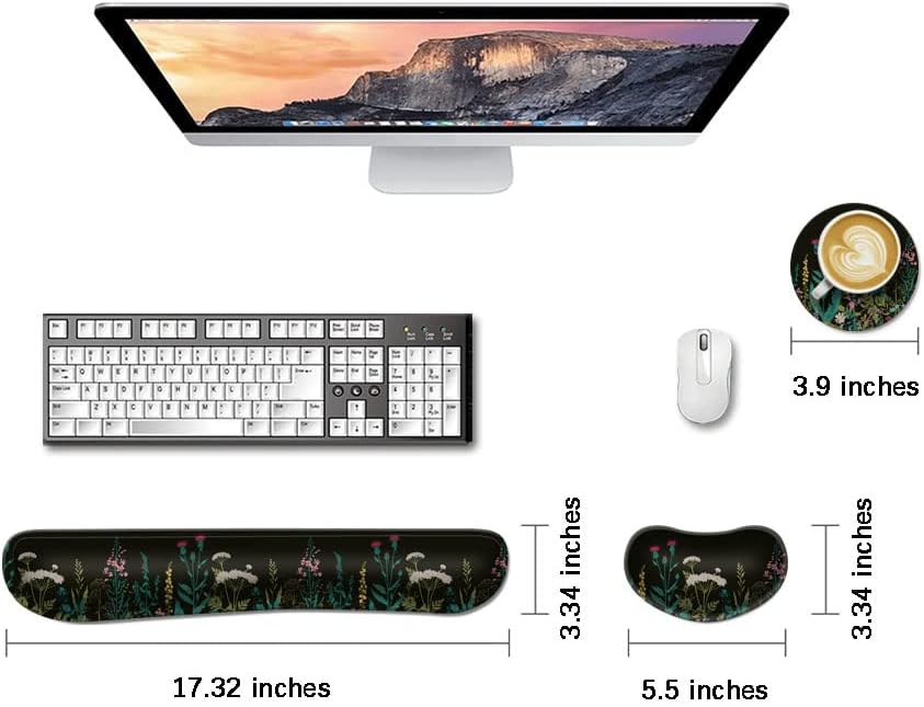 MIBITRI وسادة مسند المعصم المصنوعة من الجل الناعم المريح للوحة المفاتيح ودعم مسند المعصم للماوس ومجموعة قواعد شرب