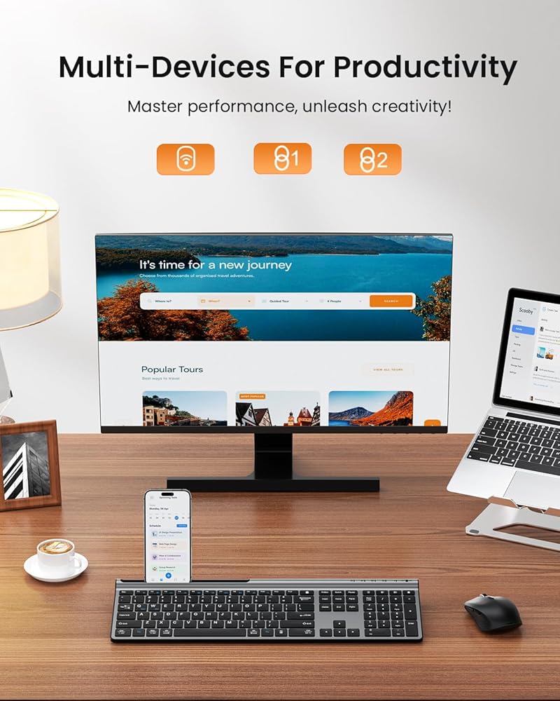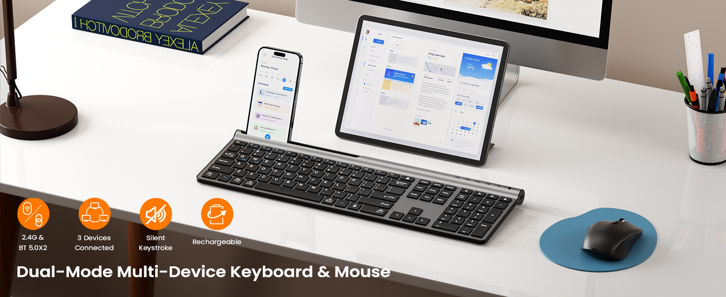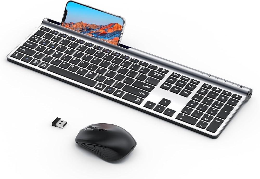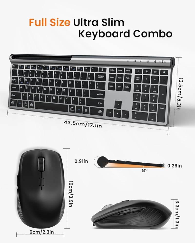 Wireless Keyboard and Mouse Combo, Artciety Rechargeable Dual-Mode (Bluetooth 5.0x2 + 2.4G) Full Size Keyboard and Mouse Set