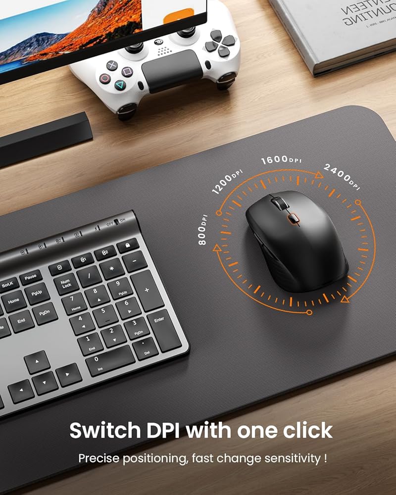 【Sensitive Response & Stable Connection】-- Artciety mouse upgrades the power-saving chip, makes the power consumption lower and the cursor more stable. The cursor sensitivity can be freely switched between 800-1200-1600-2400, accurate positioning, sensitive operation without lag, easily applied for daily office or games and other scenes! Smooth and low-profile large keys, with excellent touch and sufficient button travel, offer you quiet and comfortable typing experience!