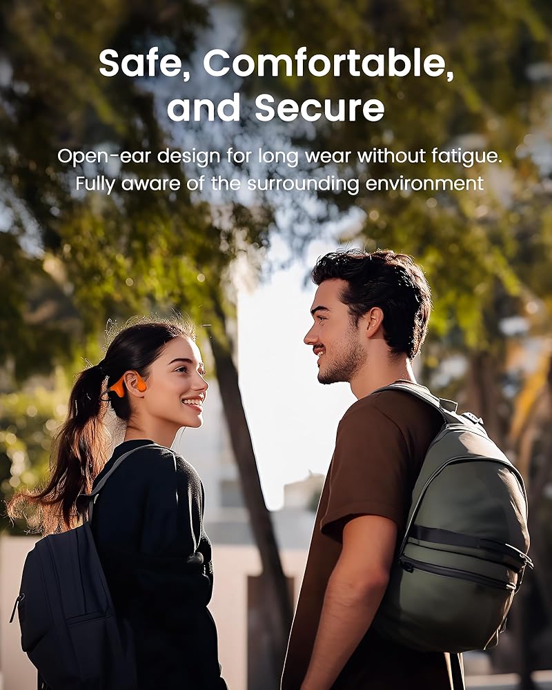 • تتميز سماعات الرأس المتطورة بتصميم فريد مفتوح الأذن، مما يضمن استماعًا مريحًا وخاليًا من سماعات الأذن مع السماح لك بالتعرف على البيئة المحيطة بك