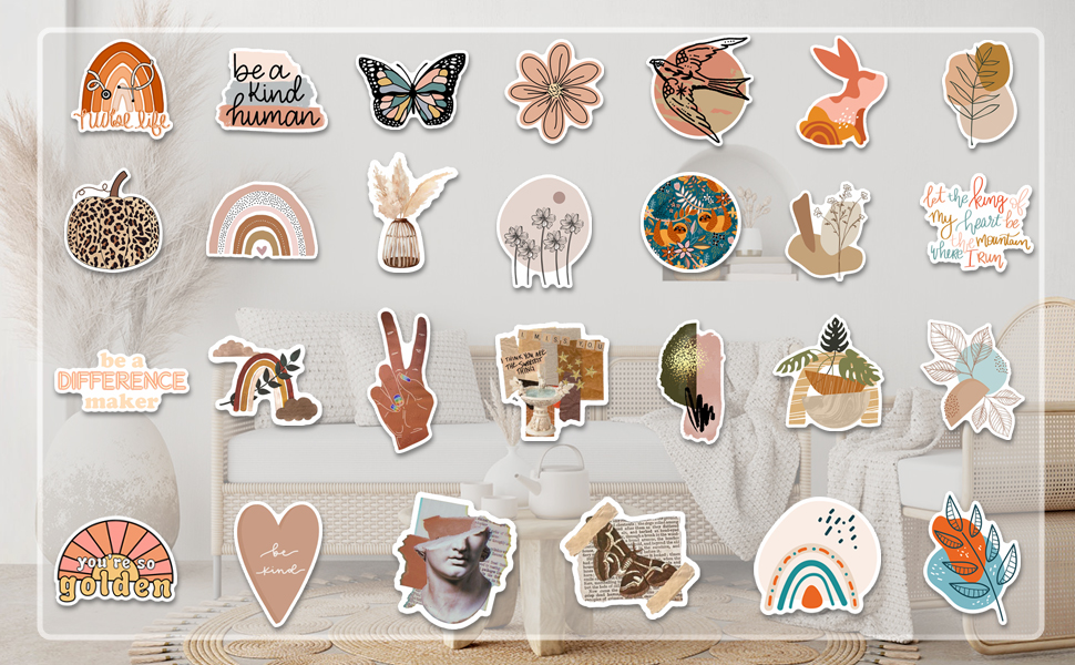 ملصقات للمساحات الجمالية: مع التركيز على ديكور بوهو، والألوان العصرية والناعمة المتربة والبنية الفاتحة وقوة الاقتباسات التحفيزية، هذه المجموعة من الملصقات رائعة مع شعور مريح. يبلغ مقاسها بين 5.08 سم - 10.16 سم، لذا فهي مثالية لتزيين مساحتك!