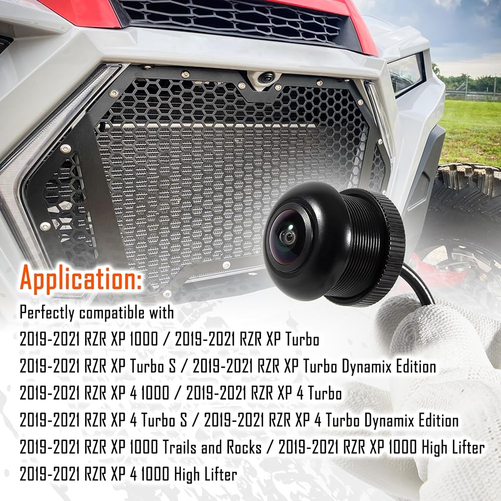 • Application-Perfectly compatible with Polaris RZR Ride Command, Not for Pro XP Models. Our front camera features accurate imaging effects, will effectively shrink light, improve transmittance, enhance sharpness, correct aperture and block clutter to provide clear 720P HD images and views.