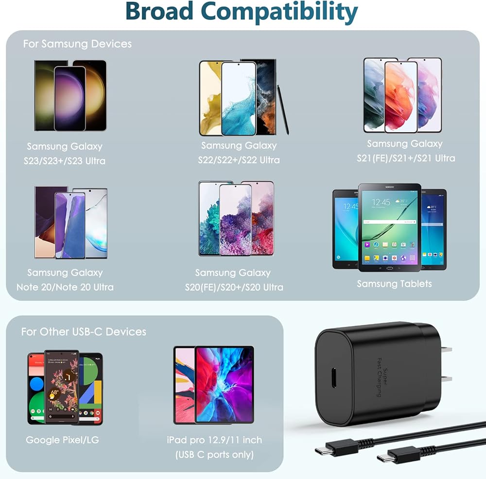 【شاحن من النوع C مع توافق عالمي】شاحن USB C السريع متوافق مع معظم أجهزة منفذ USB C، بما في ذلك Samsung Galaxy S23/S23+/S23 Ultra، S22/S22+/S22 Ultra، S21/ S21+/ S21 Ultra 5G/S21 FE، Note10/ 10+، Note 20/20 Ultra 5G، S20/S20+/S20 Ultra 5G/ S20 FE 5G، S10/ S10+/S10e، Galaxy Zfold 3/4، Galaxy Z Flip 3/4، S9، S9 plus، S8 و S8 Plus و Galaxy A31 و A32 و A40 و A41 و A42 و A50 و A51 و A52 و A60 و A70 و A72 و A80 و A90 والمزيد من أجهزة USB-C.