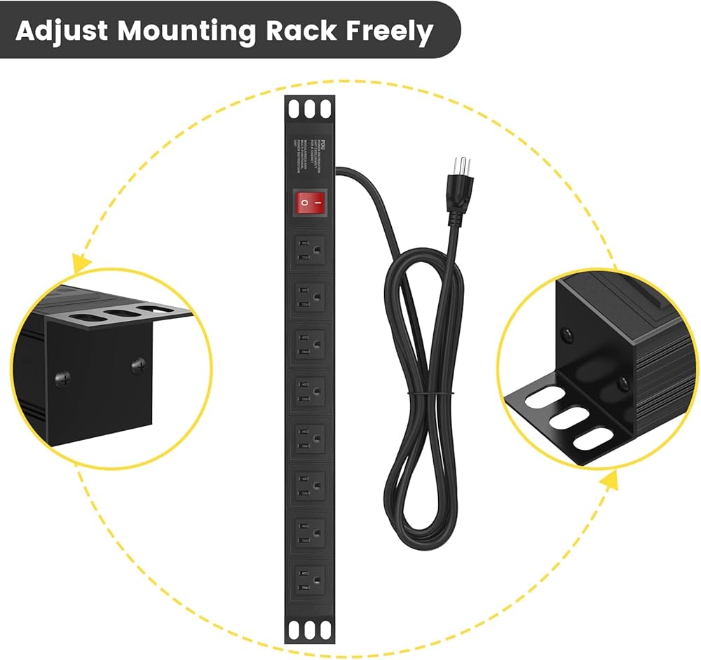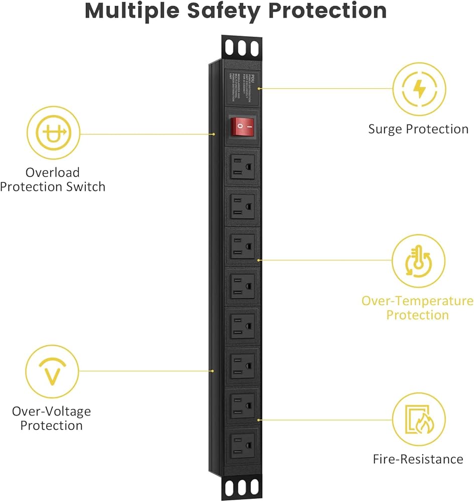【مصمم للرفوف القياسية مقاس 19 بوصة】يعد واقي التيار PDU حلاً موثوقًا وفعالًا لتوزيع الطاقة على الأجهزة في حامل أو خزانة قياسية مقاس 19 بوصة. مثالي لمراكز البيانات ومرفقات الرفوف والمعدات الصوتية.
