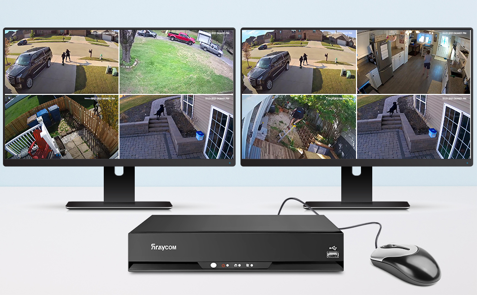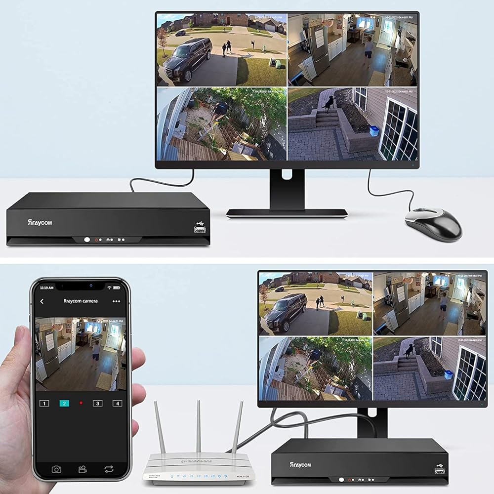 تسجيل مستمر على مدار الساعة طوال أيام الأسبوع: تحافظ كاميرا Rraycom الأمنية على مراقبة منزلك على مدار الساعة طوال أيام الأسبوع بعد توصيلها بجهاز dvr الخاص بك. يمكنك مشاهدة البث المباشر أو تشغيل الفيديو المسجل في مسجل الفيديو الرقمي عبر شاشتك أو التطبيق الذكي.