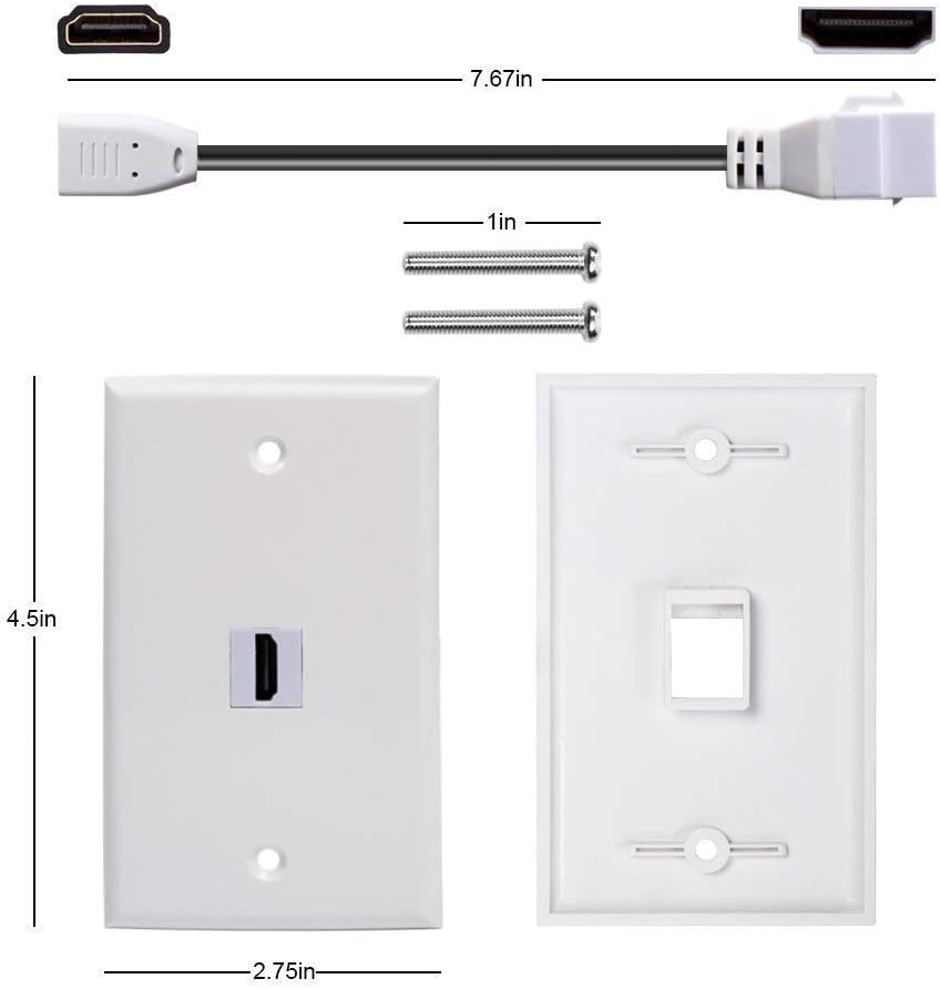 - منتج رائع للتطبيقات المخصصة. إذا كنت تريد إخفاء أسلاكك في الجدران، فسيكون من الصعب حقًا عدم استخدام لوحة الحائط. تتميز لوحة الحائط هذه بمقابس HDMI مطلية بالذهب عيار 24 قيراط. تدعم لوحة الحائط هذه أي موصلات من نوع HDMI. متوافق مع أي صندوق عصابة واحد. سيسمح لك السلك مقاس 4 بوصات الموجود في الجزء الخلفي من لوحة الحائط بتوصيل الكابل الذي يعمل في الحائط بلوحة الحائط بسهولة دون ثنيه