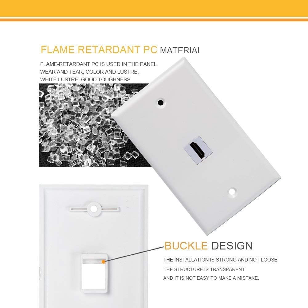 • يتم استخدام مواد عالية الجودة: لوحة الحائط HDMI هذه مصنوعة من مواد بلاستيكية عالية الجودة مما يجعلها متينة وقوية. موصلات HDMI مطلية بالذهب لتحسين جودة الاتصال ومنع تسرب الإشارة. إنها مبنية بشكل جيد ومصنوعة من مكونات عالية الجودة