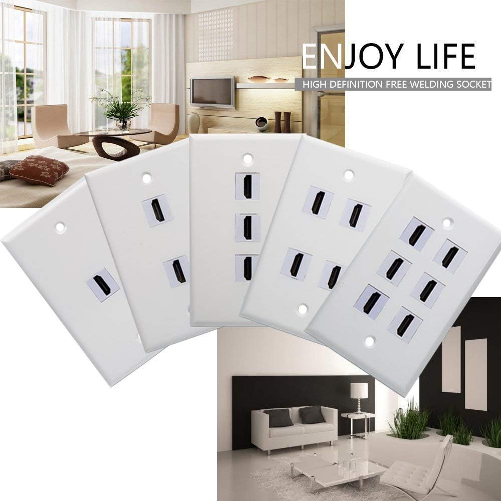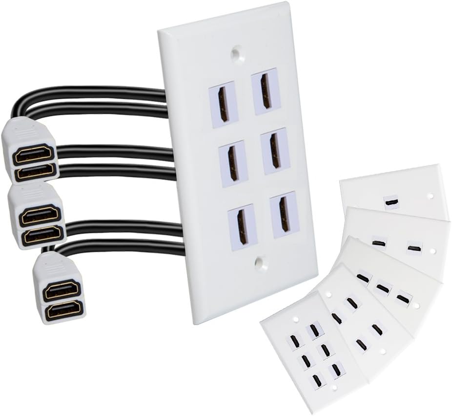 غطاء منفذ لوحة الحائط 6 منافذ 4K HDMI مقبس توصيل مدمج مع كابل ضفيرة HDMI عالي السرعة من أنثى إلى أنثى 6 بوصة لأنظمة ألعاب الفيديو وصناديق التلفزيون والأجهزة التي تدعم قناة إيثرنت، أبيض