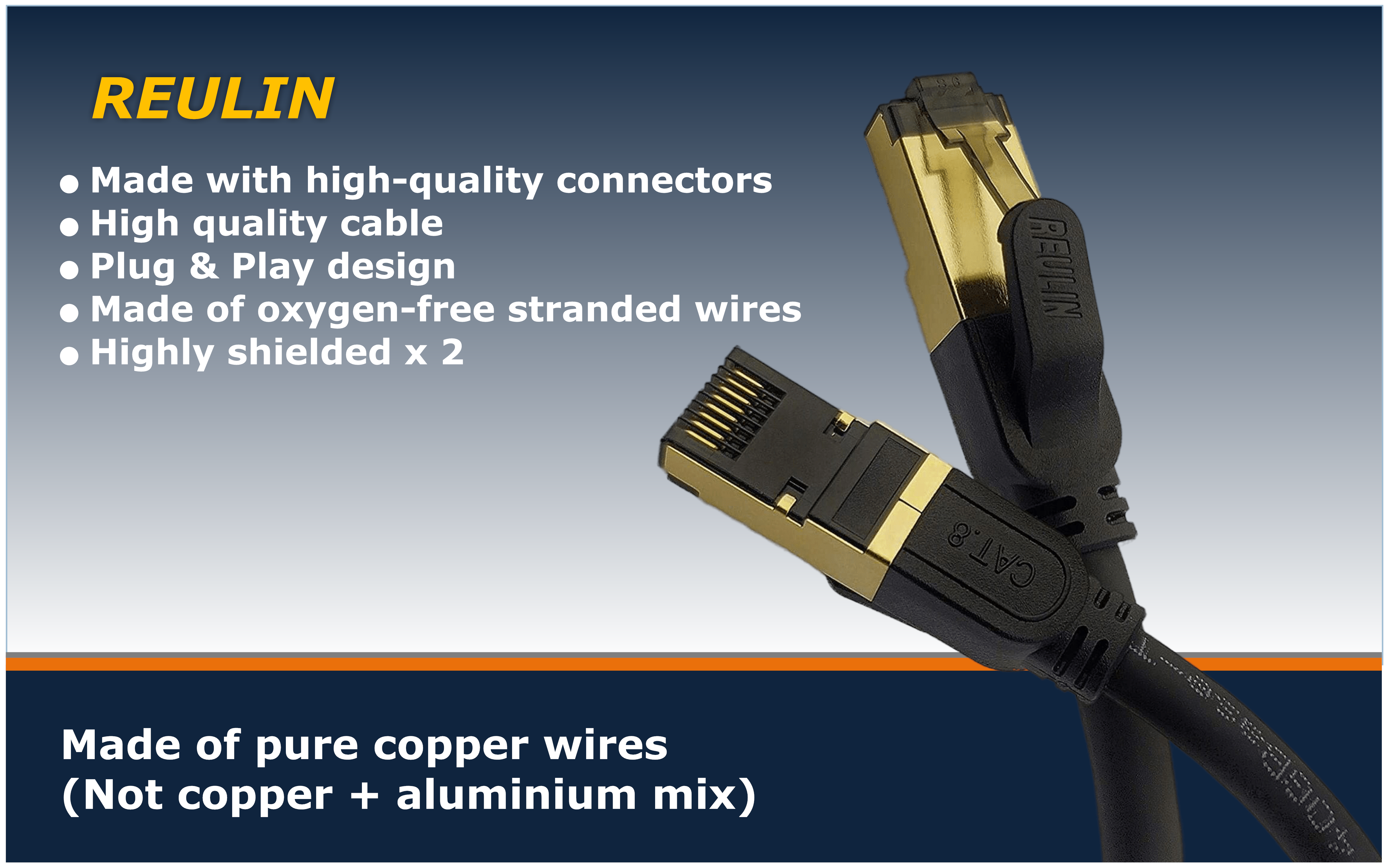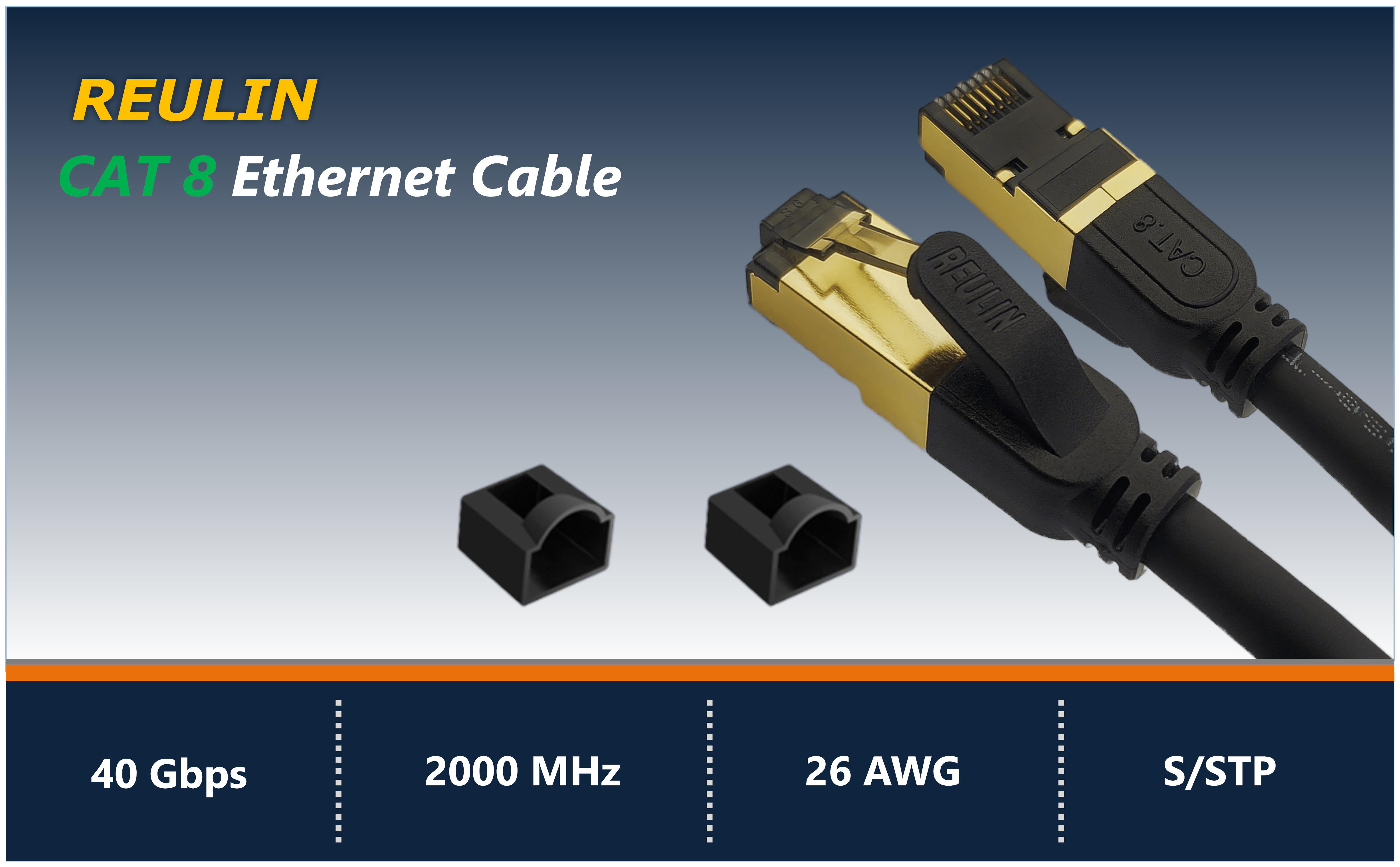 كابل إيثرنت Reulin التوصيل والتشغيل، كابل Cat8 LAN، TP، كابل شبكة 40G-2 جيجا هرتز RJ45 لربط محور جهاز التوجيه المودم مع التلفزيون الذكي، موزع إيثرنت، مفتاح جيجابت، ألعاب للمنزل والمكتب (8,2 قدم)