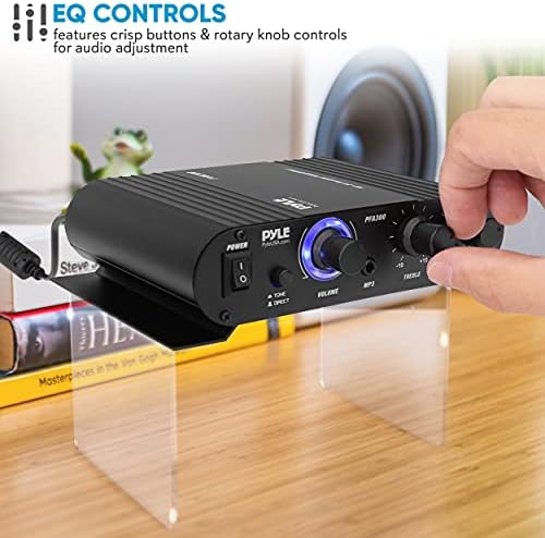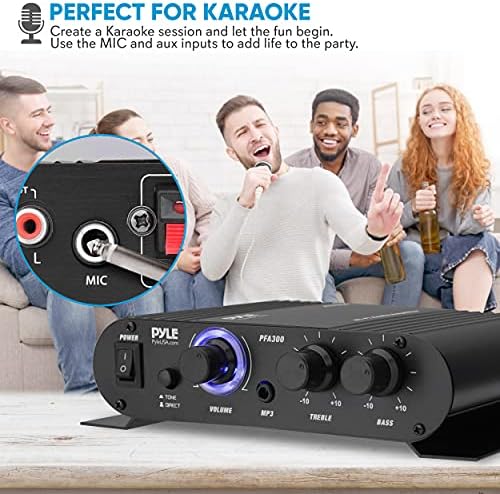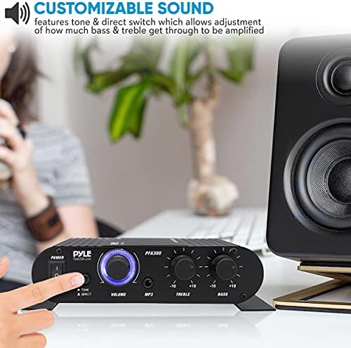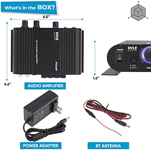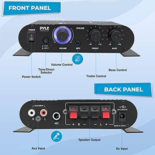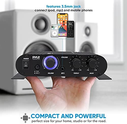 مضخم صوت ستيريو هاي فاي من باور هوم - جهاز استقبال الصوت المحيطي ثنائي القناة بقدرة 90 وات مع محول 12 فولت - لمكبر الصوت، MP3، iPad، iPhone، السيارة، القوارب البحرية، نظام PA - Pyle PFA300