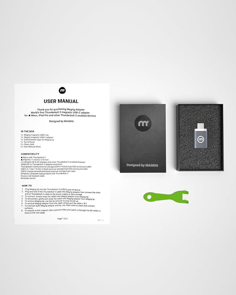 • [قوائم العبوات]: 1x محول USB C مغناطيسي + طرف USB + شريط تعزيز + مزيل طرف + قطعة قماش نظيفة + دليل المستخدم