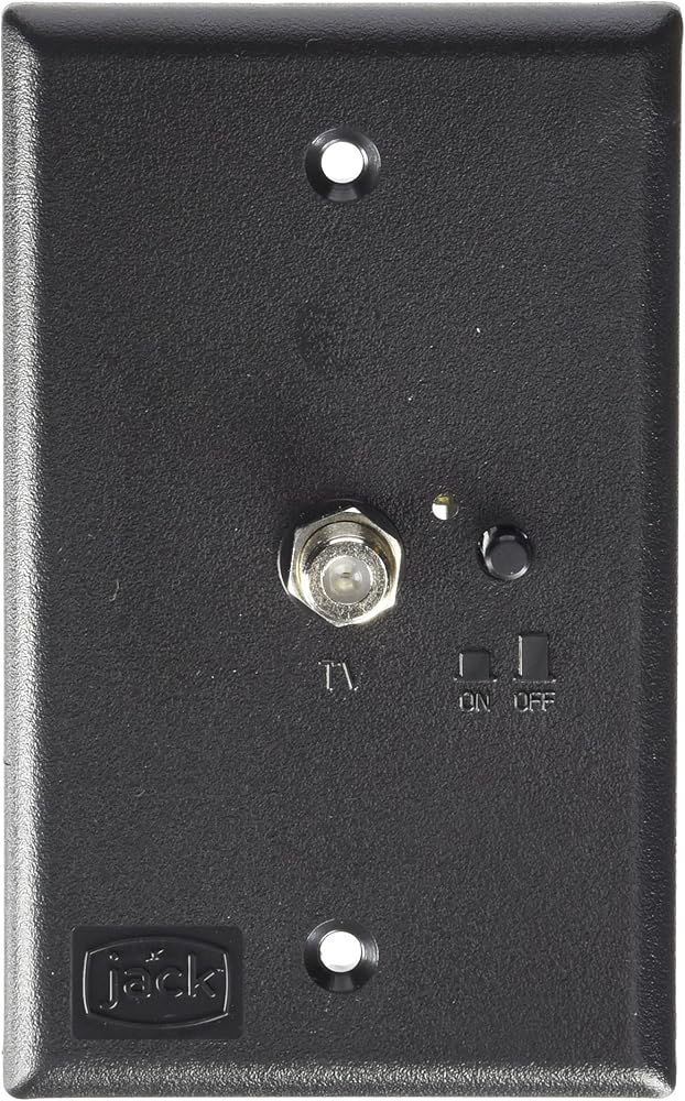 مزود طاقة بتيار مستمر 12 فولت للهوائي المضخم مع لوحة تثبيت على الحائط. مدخلات لهوائي التلفزيون والكابل مع مفتاح اختيار مدمج. موصلات من النوع F لمخرجي التلفزيون.
