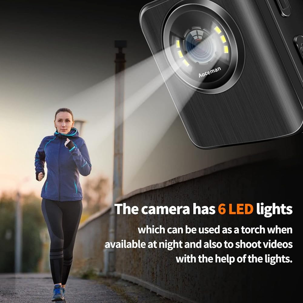 【تسجيل متكرر وعلامة مائية للوقت】عندما تكون سعة بطاقة الذاكرة أقل من 800 ميجابايت، سيتم مسح أقدم فيديو لإفساح المجال لحفظ جديد. يتميز بدقة HD لكاميرا جسمك، أو تسجيل رحلة ركوب الدراجة أو السفر أو أخذها من أجل الشاشة اليومية، اختيار جيد لحياتك.