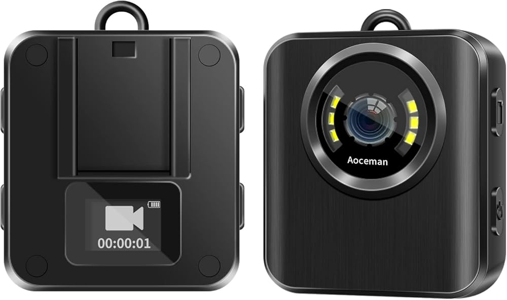 Aoceman Body Camera Body Cam Police Mini Spy Nanny Cam خفيفة الوزن ومحمولة 1080P كاميرا الجسم مع فيديو يمكن ارتداؤها لحارس أمن المنزل المنزل في الهواء الطلق السفر التخييم ركوب الدراجات