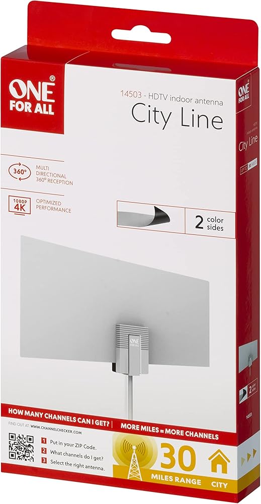 وان فور اول هوائي HDTV داخلي: للحصول على تعليمات مفصلة حول كيفية تركيب هذا الهوائي، يرجى الرجوع إلى دليل المستخدم. لا تنس إجراء مسح للقناة على التلفزيون أو جهاز فك التشفير بعد توصيل الهوائي (وفي كل مرة تقوم فيها بإعادة وضع الهوائي) لمعرفة القنوات التي ستتمكن من استلامها. في حالة وجود أسئلة حول التركيب أو تحسين تغطية القناة، يرجى الاتصال بـ The One for all support line على 855-823-3422، يحتوي هذا الهوائي على نطاق استقبال يصل إلى 25 ميل، مما يجعله مثاليًا للوصول إلى قنوات التلفزيون عالية الدقة HD المجانية بدقة 1080 HD. يرجى الأخذ في الاعتبار أن جودة الاستقبال وعدد القنوات المستلمة تعتمد على عوامل متعددة مثل المسافة من برج البث التلفزيوني وقوة البث وخط الرؤية والتضاريس ومواد البناء المعدنية وعوامل أخرى.