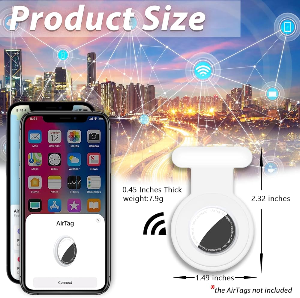 متوافق مع جهاز تعقب Airtag، حامل Airtag من السيليكون المخفي GPS للأطفال مع دبوس غير مرئي، غطاء مخفي لعلامة Apple Air Tag للأطفال الصغار وكبار السن والحيوانات الأليفة والملابس (أبيض + أبيض)