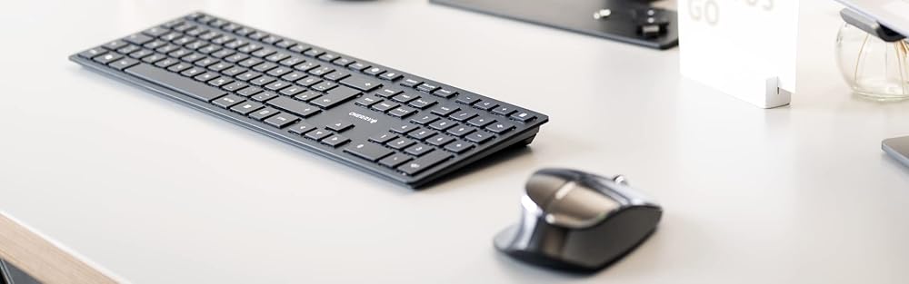 ستلبي مجموعة الكمبيوتر المكتبي تشيري DW 9500 SLIM حتى أكثر المتطلبات صرامة. تترك انطباعًا بفضل أحدث التقنيات وصناعة عالية الجودة وتصميمها المسطح للغاية. التصميم بسيط في الشخصية، ولكن العملية والأناقة لا تترك أي شيء مرغوب فيه. يمكن توصيل مجموعة سطح المكتب المسطحة الإضافية اختياريًا عن طريق البلوتوث أو باستخدام مستقبل USB اللاسلكي بتردد 2.4 جيجاهرتز. مفتاح منزلق على الماوس ولوحة المفاتيح يجعل التبديل بين لعب الأطفال. يسمح ذلك، على سبيل المثال، بتوصيل اللاب توب باستخدام البلوتوث وجهاز كمبيوتر إضافي ليتم توصيله لاسلكيًا والذي يتم تشغيله مع نفس مجموعة سطح المكتب. ناقل حركة خالٍ من التداخل بنطاق يصل إلى 10 أمتار مشفر AES-128 - لكل من الكيبورد والماوس. مجموعة الكيبورد والماوس الأنيقة تعمل ببطاريات ليثيوم عالية السعة قابلة لإعادة الشحن. تدوم لأسابيع دون الحاجة إلى إعادة شحنها - وعندما تفعل ذلك، يوفر كابل USB-A إلى USB-C الطاقة. عند الشحن، ستجد أنه من السهل الاستمرار في العمل باستخدام مجموعة الكيبورد اللاسلكية. تعتاد على إيقاف تشغيل جهاز تشيري DW 9500 SLIM اللاسلكي عندما لا يكون قيد الاستخدام للحفاظ على تشغيل البطاريات القابلة لإعادة الشحن لفترة أطول. تضمن تقنية مقص تشيري SX الراحة عند العمل بأقصى إنتاجية. سترسم تجربة الكتابة الفريدة ابتسامة على وجهك في المرة الأولى التي تقوم فيها بتوصيله بالكهرباء: يسهل السفر المنخفض بمقاومته المحددة تمامًا الكتابة السريعة والخالية من الأخطاء. أي شخص يحتاج إلى أكثر من ستة مفاتيح إضافية سيجد برنامج تشيري KEYS المجاني الخيار الصحيح. يمكن استخدامها لبرمجة المفاتيح الخاصة ومفاتيح F لتناسب الاحتياجات الفردية. كما أن الشريط المغناطيسي المتضمن له تأثير إيجابي على المرونة. يمكن تركيبها في غضون ثوانٍ إذا احتاجت لوحة المفاتيح إلى وضعها بزاوية أكثر انحدارًا. تتميز لوحة المفاتيح اللاسلكية بمصابيح ليد مدمجة في المفاتيح ذات الصلة. يشير هذا على الفور إلى ما إذا كان قفل الأغطية أو قفل التمرير أو رقم