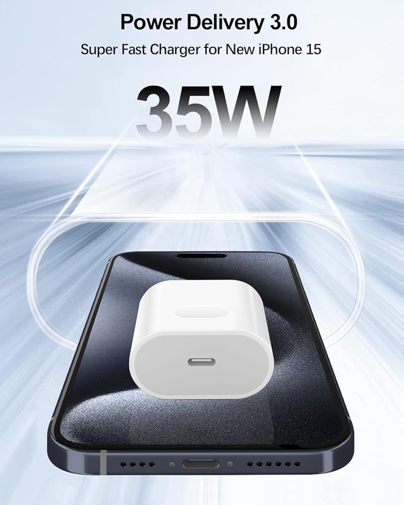 شاحن سريع جديد بقدرة 35 وات PD3.0: تمت ترقيته بمخرج 35 وات، ويوفر شحنًا كامل السرعة بقدرة 35 وات لجهاز iPhone 15 الجديد، وقم بتشغيل جهاز iPhone 15 Pro الخاص بك إلى 50% في 25 دقيقة فقط. يدعم أيضًا شحن سامسونج فائق السرعة (25 واط).
