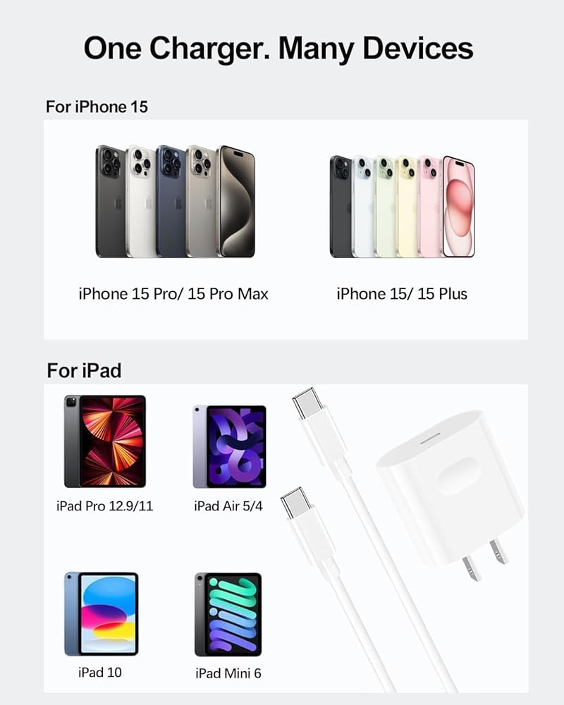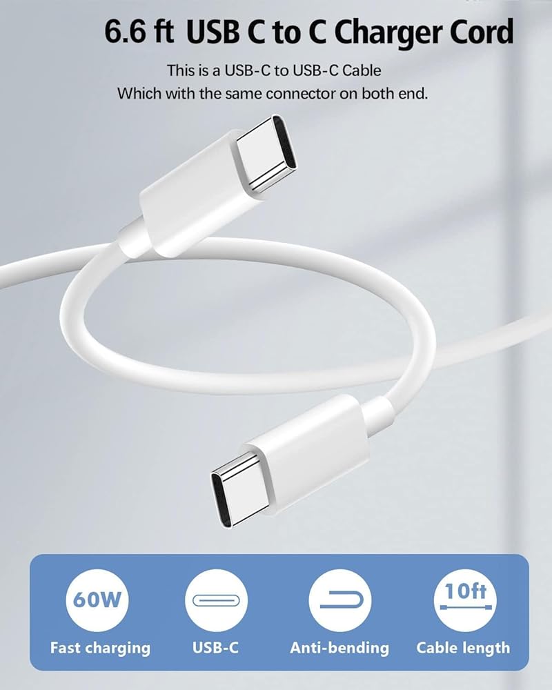 كابل شحن طويل للغاية بطول 10 أقدام: يشتمل على سلك USB c بطول 10 أقدام (3 أمتار) إلى USB c، مما يمنحك مساحة أكبر للتحرك أثناء الشحن. إنها طويلة بما يكفي لتكون مريحة لشحن جهاز iPhone وiPad الخاص بك أثناء الاستلقاء على السرير أو على الأريكة.