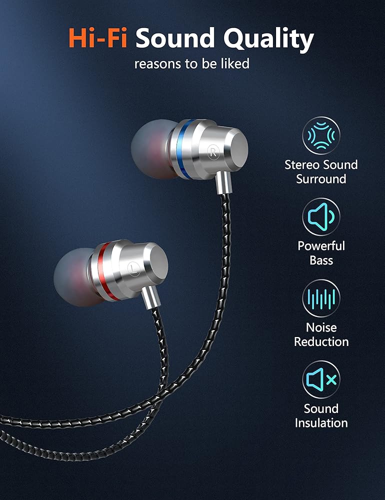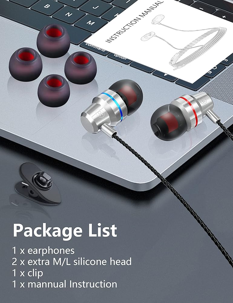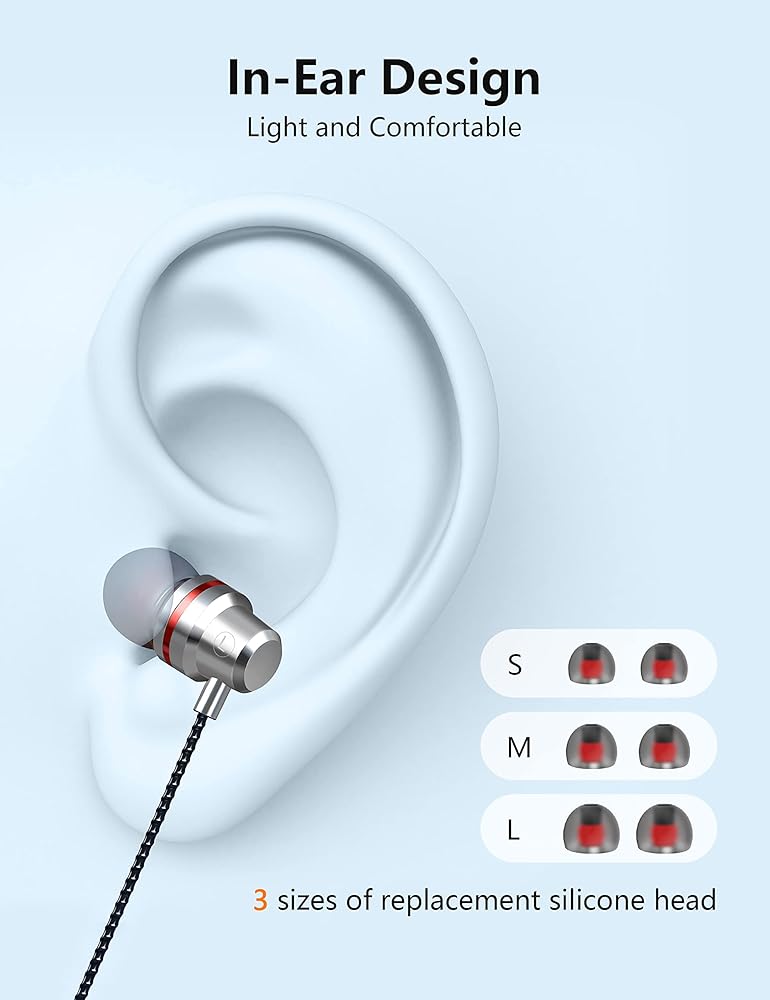 【تصميم مريح】تم تصميم سماعات الرأس السلكية داخل الأذن هندسيًا لتناسب أذنيك بشكل مثالي لفترة طويلة. إنه مثالي للاستماع إلى الموسيقى أثناء ممارسة الرياضة. تمنع سماعات الأذن المصنوعة من السيليكون غير القابلة للانزلاق سماعات الأذن من السقوط. تأتي المجموعة مع زوجين من وسائد الأذن الإضافية (S/L)، بحيث يمكن للمستخدمين استبدال سماعات الأذن بالحجم المناسب وفقًا لآذانهم.