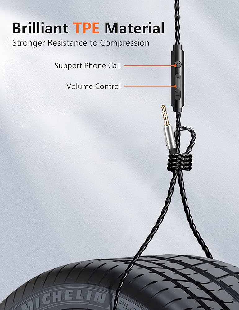 【خامة عالية الجودة】 مصنوعة من مادة TPE ناعمة ومرنة وتصميم سلكي خالٍ من التشابك على شكل حرف Y. 3.9 قدم طويلة. تصميم خفيف الوزن يسهل حمله، والمواد عالية الجودة لسماعة الرأس تعني المزيد من مقاومة التآكل والتآكل.