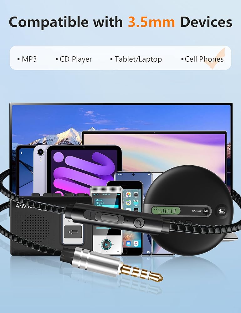 توافق واسع: سماعات أذن سلكية لأجهزة مقبس سماعة الرأس 3.5 مم مع موصلات مطلية بالذهب، متوافقة مع iPhone والهواتف الذكية Android ومشغلات الكاسيت ومشغلات الأقراص المضغوطة والكمبيوتر وجميع أجهزة الواجهة 3.5 مم.