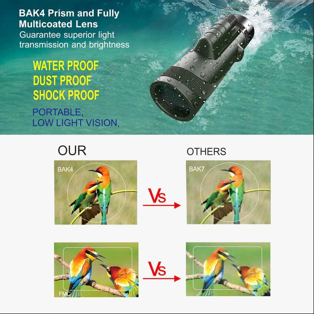 ✅تكبير عالي الطاقة 12X50: 【ملاحظة: جميع المنظار الأحادي الآخر مع تكبير 40x60 أو 80x100 مبالغ فيه للغاية، إنه ليس حقيقيًا (معظمها 10x42 فقط). مع التكبير 12x، والعدسة العينية 23 مم والعدسة الموضوعية التي تجمع الضوء 50 مم، يقدم منظار BrilliantHouse 12x50 عالي الطاقة صورًا مشرقة وواضحة ضمن نطاق 289 قدمًا/1000 ياردة (رؤية أكبر من التلسكوبات التكبير الأعلى الأخرى). يعد التلسكوب المتقدم خيارًا رائعًا لاكتشاف الحياة البرية ومشاهدة الطيور ومشاهدة الحفلات الموسيقية ومشاهدة النجوم ومشاهدة الألعاب الرياضية.